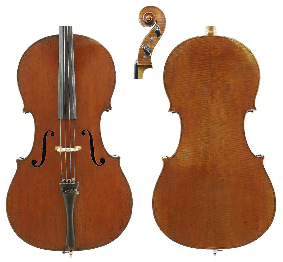 Good early 19th century English violoncello from George Corsby and stamped Corsby, Northampton below the button, the two piece back of medium curl with similar wood to the sides and head, the table of a fine/medium width grain and the varnish of a light reddish-brown colour on a golden ground, 29 3/4", 75.60cm £12,000-15,000