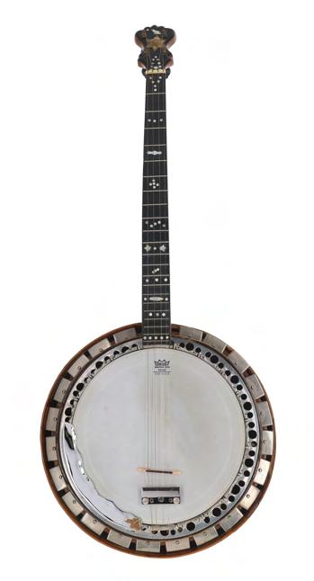 Fine 22 fret plectrum banjo by Clifford Essex, serial no. 2003, bearing a name plate on the perch pole, 12" diameter skin, archtop tone ring, with hard case
