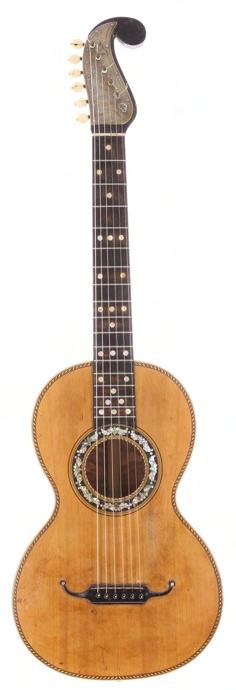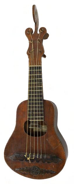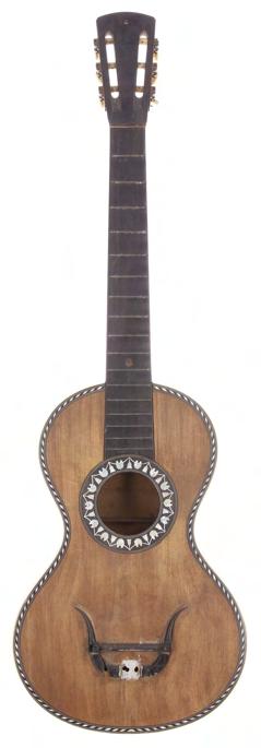 Mexican six string small Jarana type guitar, 19th century, bearing a repair label to the inner back, scale length 29cm