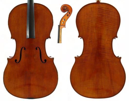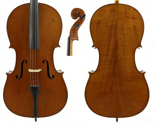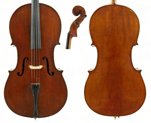 19th century violoncello indistinctly inscribed in pencil to the inner back, the two piece back of very faint medium curl with similar wood to the sides and head, the table of a medium/fine width grain and the varnish of a golden-brown colour, 29 1/8", 74cm