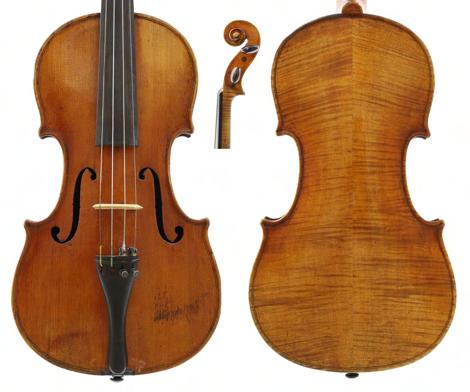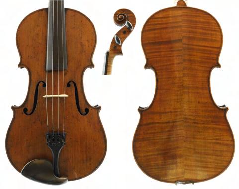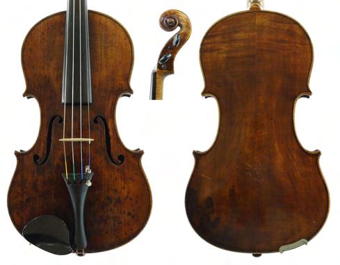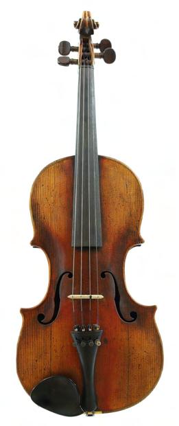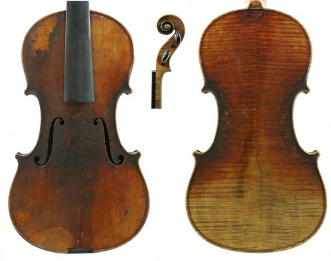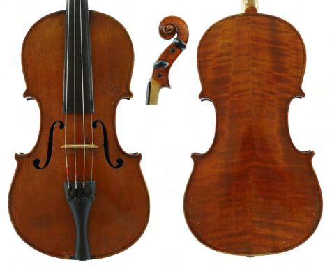 Interesting late 18th/early 19th century violin stamped Duke, London below the button, unlabelled, the one piece back of faint medium curl with similar wood to the sides and head, the table of a medium width grain and the varnish of a reddish-brown colour on a golden ground, 13 13/16", 35.10cm, case (sound post cracks in the back and front)
