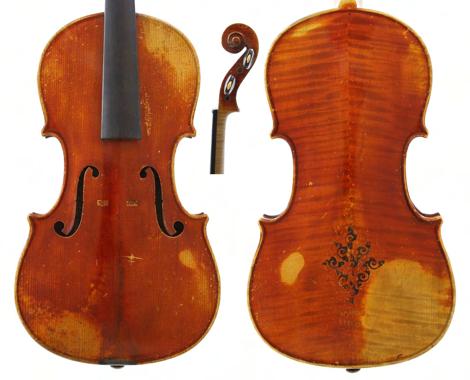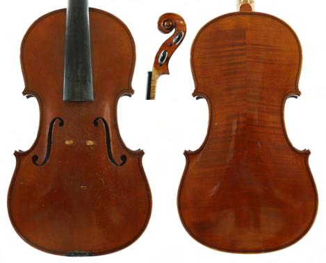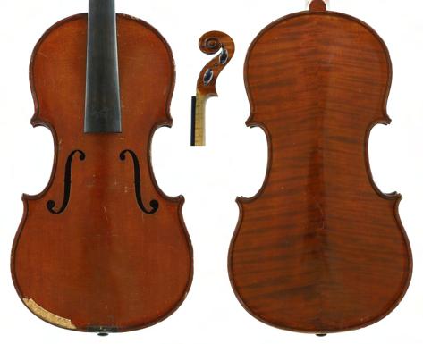 Good violin bearing the retail label of Thomas Craig of Aberdeen, 1899, the two piece back of broad curl with similar wood to the sides and head, the table of a fine width grain slightly widening to the flanks and the varnish of a light reddish-brown colour on a golden ground, 14 1/16", 35.70cm