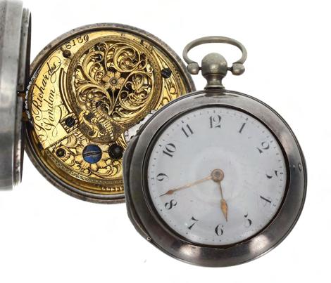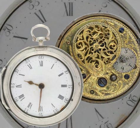 Jas Sibley, London - English 18th century silver pair cased verge pocket watch, signed fusee movement, no. 2772, three-arm sprung balance, pierced and engraved balance cock and foot, silvered regulating dial and square baluster pillars, Roman numeral dial with outer minute track, associated cases hallmarked London 1775 (inner) 1760 and 1775 (outer), 49mm (in need of repair)