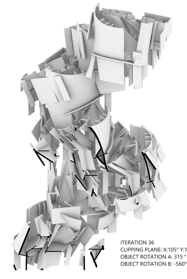 Utilizing the precedent building, the Tall House by Sean Canty, transformations were applied to create a library of alternative floor plans. Plans selected from these transformations were then utilized in creating a 3 dimensional object exhibiting the rotational and expanding forces applied in the planar dimension.