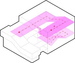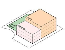 Circulation of both the main gallery as well as the community spaces were prioritized in conjunction with the arrangement of program in response to climate and zoning conditions. The rift of glazing on the Northeast Corner of the building houses the community gallery, creating a connection between local art and the surrounding neighborhood. This exhibit marks the starting point in the circulation of the museum’s gallery, establishing an emphasis on Corita Kent’s mission of accessibility to art and its potential to empower communities.