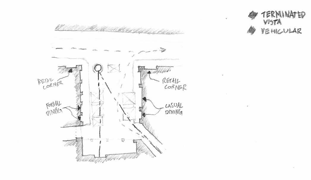 Retail corner shops grab attentionpedestrian from the street and invites people into the plaza