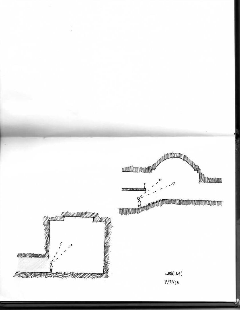 People view and experince the world primarily at head level. Certain instances influence individuals to look upwards outside of that view. These instances can provide different perspectives, and alter how people experience certain places. Feelings of elevation are exemplified and new views are opened up, which gives way for designers to capitilize upon these moments.