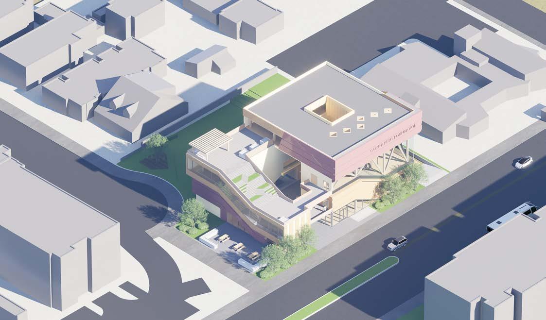 The Corita Kent Art Foundation is a Mass Timber project dedicated to celebrating the life, work, and enduring legacy of Corita Kent. More than just a gallery, the Foundation seeks to uphold not only Corita’s artistic contributions but also her revolutionary pedagogy and unwavering commitment to social justice. Inspired by Corita’s unnumbered prints, testament to her belief that art should be accessible to all,the design prioritizes openness, inclusivity, and engagement. The Foundation aims to eliminate barriers to entry by offering flexible, and open spaces for learning, creating, and sharing. Corita instilled in many the understanding that art’s impact extends beyond aesthetic pleasure. It is a powerful force for social change. To honor this mission, the Foundation places community-driven spaces at the heart of its design. Easily accessible public areas, designed to encourage interaction and participation, are oriented toward the south side of the site, while the main gallery and administrative space