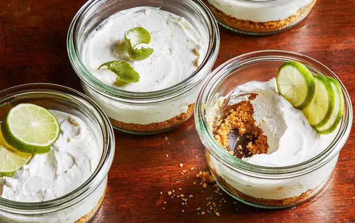 Key lime pie meets cheesecake in these adorable individual desserts. The low-sugar recipe makes a perfect dessert to tote to a picnic.