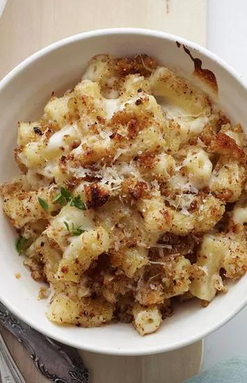 With a decadent blend of 4 Italian cheeses, a crunchy garlic-breadcrumb topping, and a drizzle of fragrant truffle oil, this recipe transforms the comfort food classic into an elegant show-stopper. Take care to only cook to al dente; the pasta will continue to cook in the oven, absorbing the flavors of the luxurious cheese sauce.