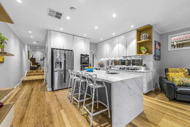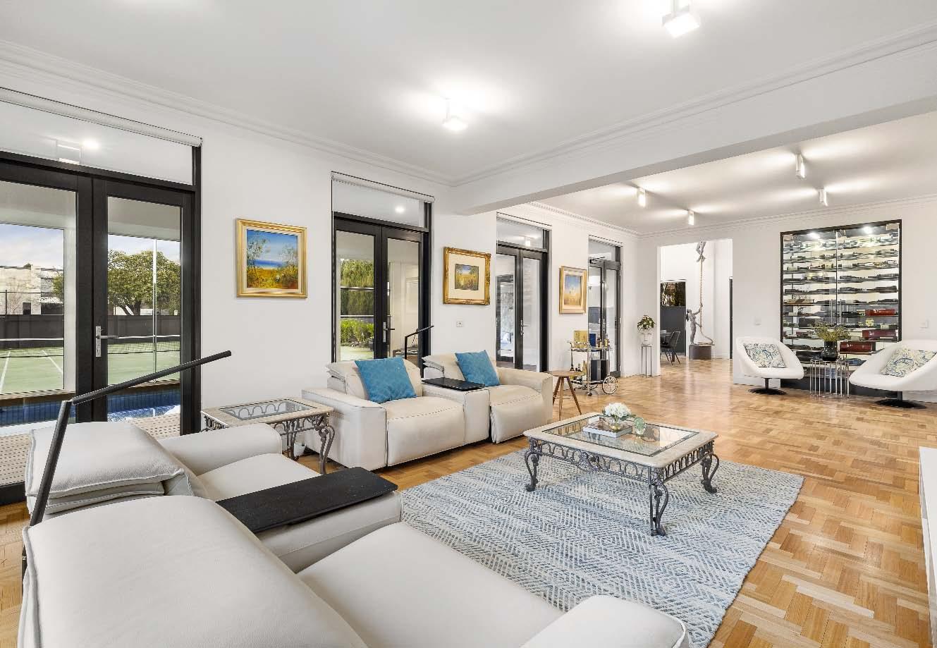 abundance of storage. The downstairs domain also includes an additional multipurpose living room, a study/work from home space with private entry & a stylish bathroom. The impressive dimensions continue upstairs to a northerly oriented main bedroom with walk in robe & luxe ensuite, four additional bedrooms, a children’s retreat & two bathrooms. Other features include ducted heating/ cooling, ducted vacuuming, double auto garage, alarm, security cameras, video intercom entry, laundry with drying cupboard & laundry chute, under stair storage, irrigation & solar panels.