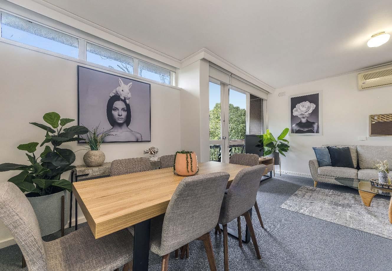 Superbly positioned amid one of Balaclava’s best strips, this impressively scaled two-bedroom apartment is a light-filled oasis updated for modern living. Elevated in a boutique mid-century block behind secure entry, the inviting interior reveals a spacious living area with private sunlit balcony & split system, a beautifully updated kitchen & meals fitted with Westinghouse oven & gas cooktop, two generously sized bedrooms with built-in robes & large windows & a central modern bathroom with shower-over-bath & laundry facilities. Complete with ample storage throughout & off-street parking, this low-maintenance home