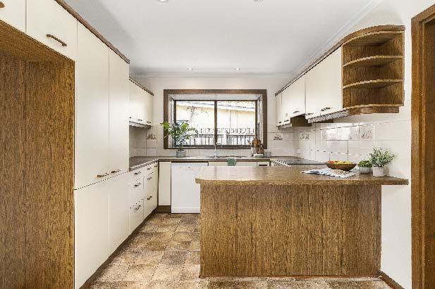 bedrooms & a large central bathroom with shower & bath. The hallway culminates in a generously proportioned light-filled living & dining zone with soaring timber lined cathedral ceilings served by a well-appointed timber kitchen with an abundance of storage & bench space. All opening out to an extremely large rear alfresco area with exciting potential to recreate something special. Other features include off street parking for one car, large laundry with storage, additional toilet, ducted heating & hallway storage.