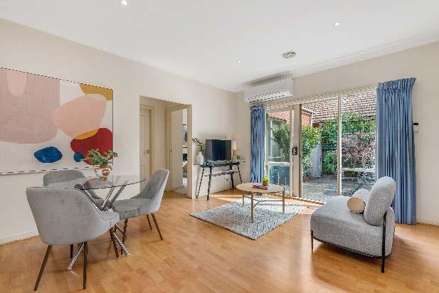 ideal for relaxing & entertaining. Also comprising a comfortable bedroom with built-in robes & a stylish bathroom. Other attributes include lift access, split system heating/cooling, secure video intercom entry, basement parking for one car with storage cage accessed via Hotham Grove & Euro laundry. Offering a hassle free lifestyle in a brilliant location with city bound transport literally on your doorstep as well as vibrant shops, restaurants & cafes all close by.