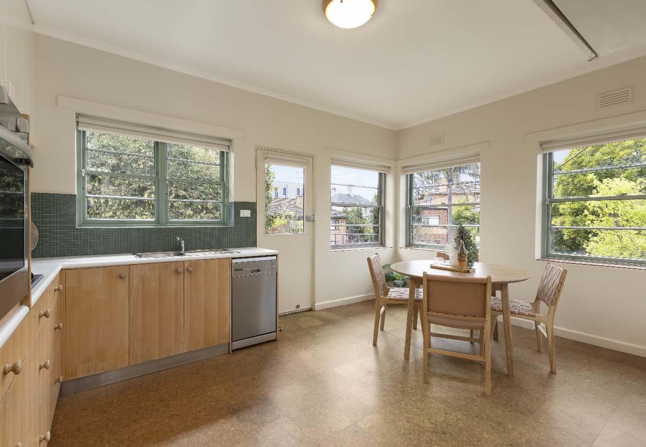 Classic 1950s with huge proportions, one of only two. Manicured, picturesque outlooks accompany all the principal spaces of this superb house size apartment set within a peaceful cul-de-sac setting. A wide, dedicated entrance establishes the sense of space that distinguishes the entire floor-plan, featuring a substantial & ambient living & dining room where lots of natural light & a curved balcony complement the character. A separate kitchen with stainless steel appliances & a large casual meals area also enjoys a full-length balcony for a fresh breeze. A similarly functional, original bathroom with a bath is in immaculate