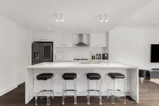 plus internal access double automatic garage enhances the overall luxury. The top-level living with a breath taking chef’s kitchen taking centre stage. Sumptuous sleeping quarters are on level one with three bedrooms boasting private terraces, walk-in robes & bathroom access. The master retreat is beautifully finished with bespoke details including a hotel style, ensuite. Residents will be sure to appreciate the high-end appointments including video intercom, alarm, ducted heating/ cooling, automated watering, solar pool heating & excellent storage.