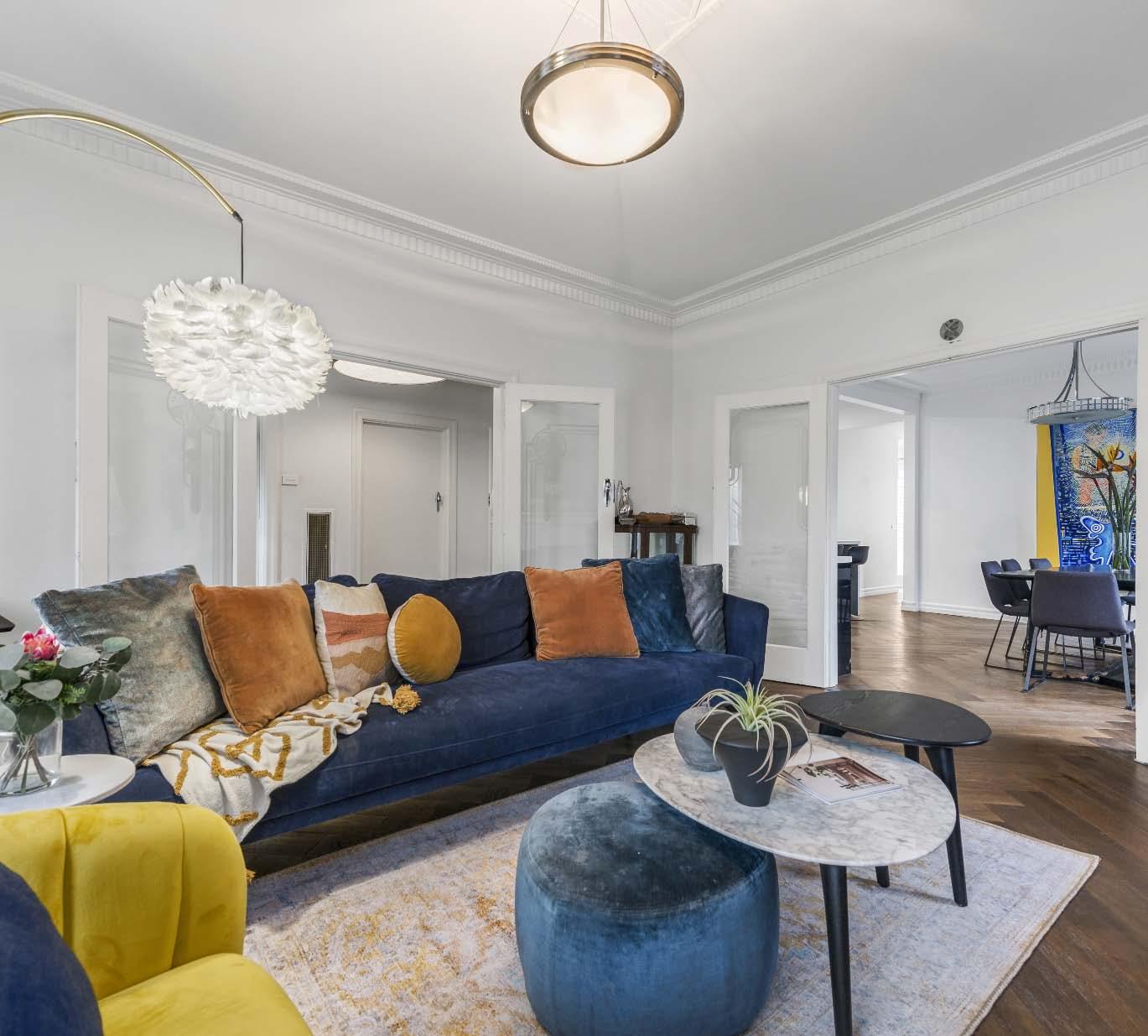 This superbly positioned apartment within a boutique block of four retains all the charm of yesteryear with exquisite original features combining with an immaculate update all its own. Offering refined elegance, a dedicated entrance showcases an enormous bespoke bookcase as a backdrop to a chic black spiral staircase. Enter a sophisticated dining & adjoining living with a seamless flow to a true entertainers terrace with tessellated tiles & café blinds set in a canopy of trees. A generous kitchen is enhanced by a servery window for easy entertaining & an industrial edge with stainless steel splashbacks, Smeg & Miele