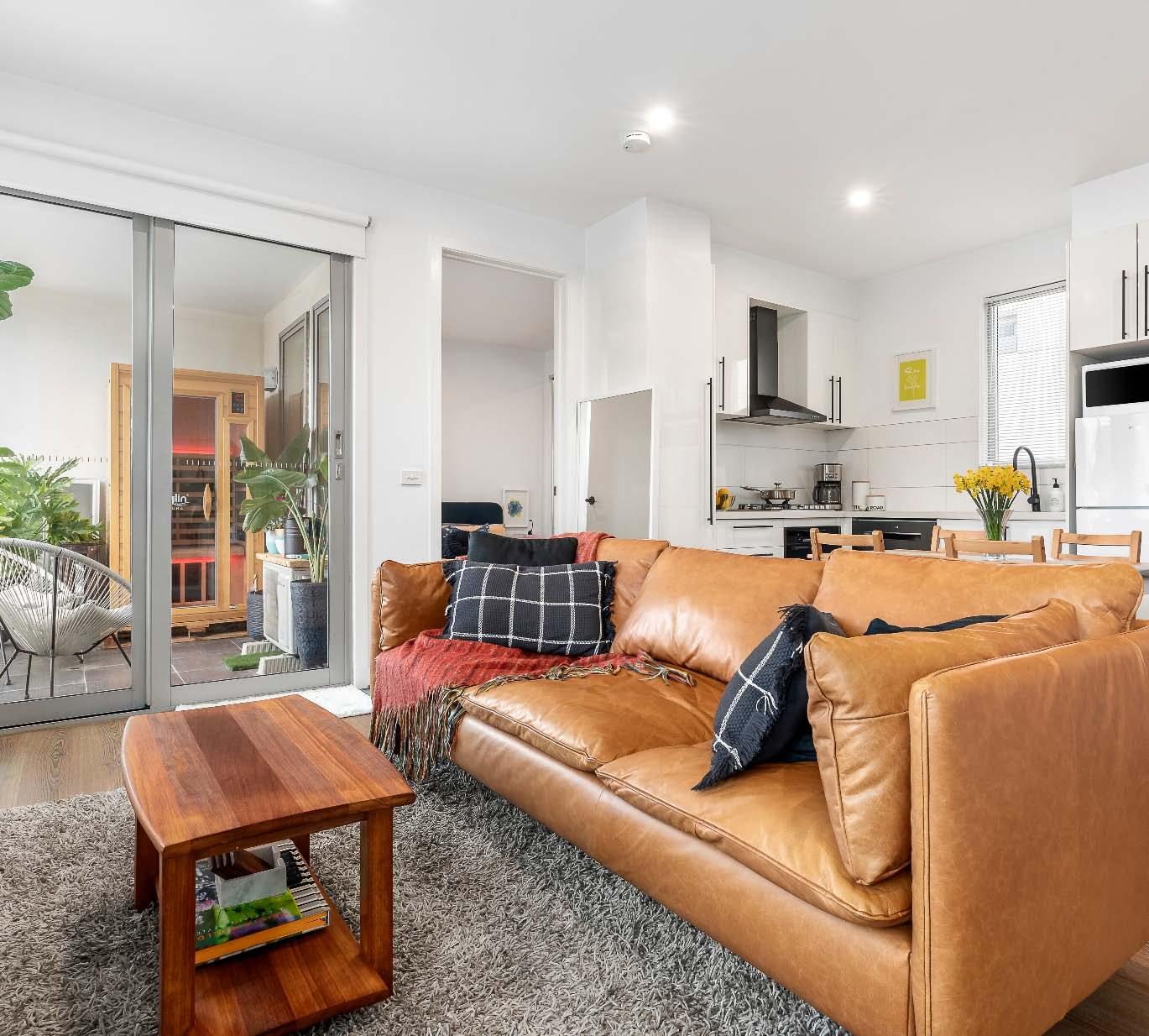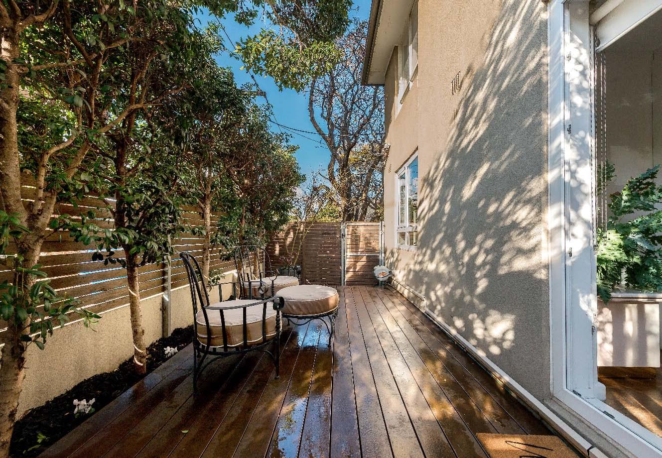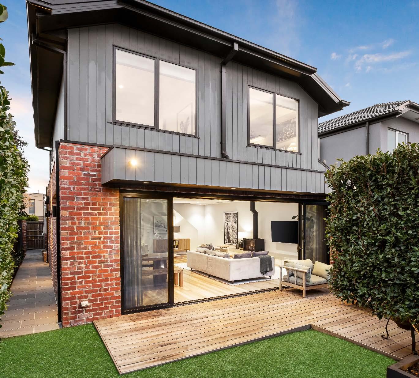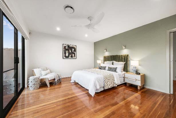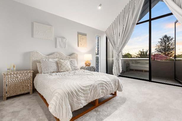 deck for year-round alfresco entertaining & space for kids equipment or a veggie garden. Further enhancing the easeful lifestyle, the chef’s kitchen is equipped with the latest Miele appliances, soft close joinery & island bench. The master suite is complete with awalk-in wardrobe & ensuite. The choice of two bedrooms offer built-in wardrobes, concluding with a matchless main bathroom & a barn-style shower door that has to be seen. Add split systems in every bedroom, Haier heating/ cooling, Euro laundry, video intercom, secure underground garage for two cars all in a most up-&-coming locale.