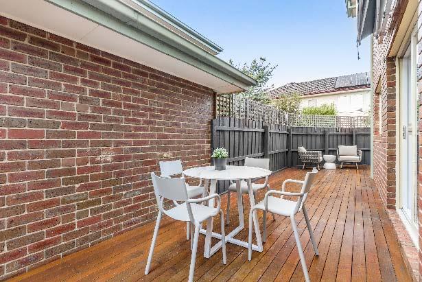 its own private deck that flows seamlessly into the tranquil courtyard — ideal for entertaining or simply unwinding in your own outdoor oasis. The apartment also includes a stylish bathroom with integrated laundry & a separate toilet for added convenience. Additional features include split system, video intercom & secure off-street parking behind automatic gates. Located in a highly sought-after street just moments from Murrumbeena Village, you’re only steps away from the train station, local cafés, Murrumbeena Park & buses to Chadstone Shopping Centre.