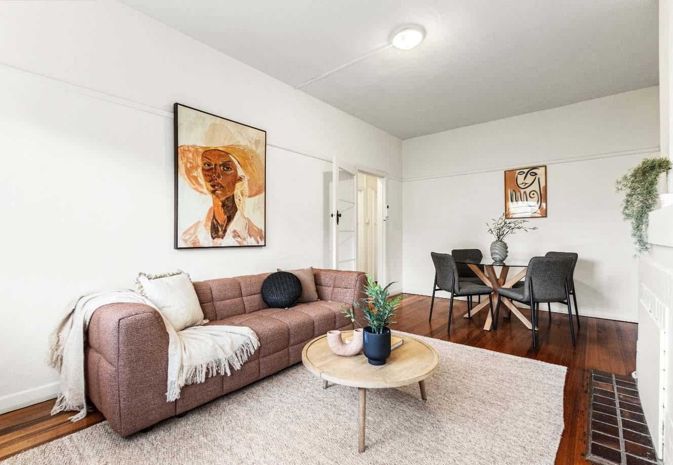 neatly presented kitchen, still in its original retro glory, offers a casual meals area & generous storage. Away from the living zone is a good sized main bedroom with walk-in robe & ensuite, while two additional bedrooms with built-in robes share a sparkling central bathroom with shower, bath & separate toilet. Other features include split system heating/cooling, a large laundry with storage, hallway storage, intercom entry & off street parking for one car. This sensational oversized apartment is perfectly comfortable as is yet offers exciting potential for a stylish contemporary renovation.