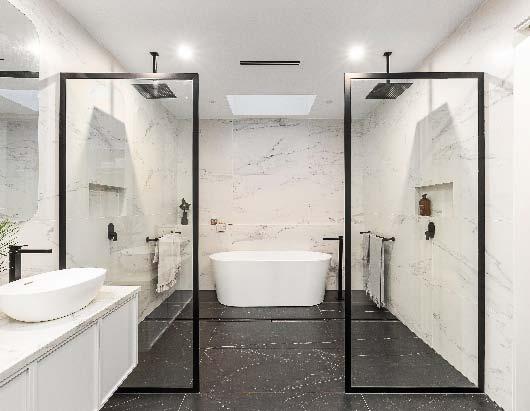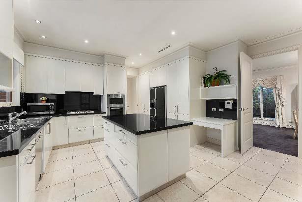 rear garden surrounded by lush greenery. Adding to the appeal, a gourmet marble kitchen & butler’s pantry entices with a suite of premium Bosch appliances. Downstairs also delivers a large formal lounge, a bathroom & a dedicated study. The generous accommodation continues upstairs to a luxurious hotel style main bedroom with a his & hers walk-in robe, dressing room & a spectacular skylit ensuite, a large landing retreat & three additional generously sized bedrooms, each with stylish ensuites. Other features include zoned ducted heating/air conditioning, double auto garage, alarm & video intercom entry.