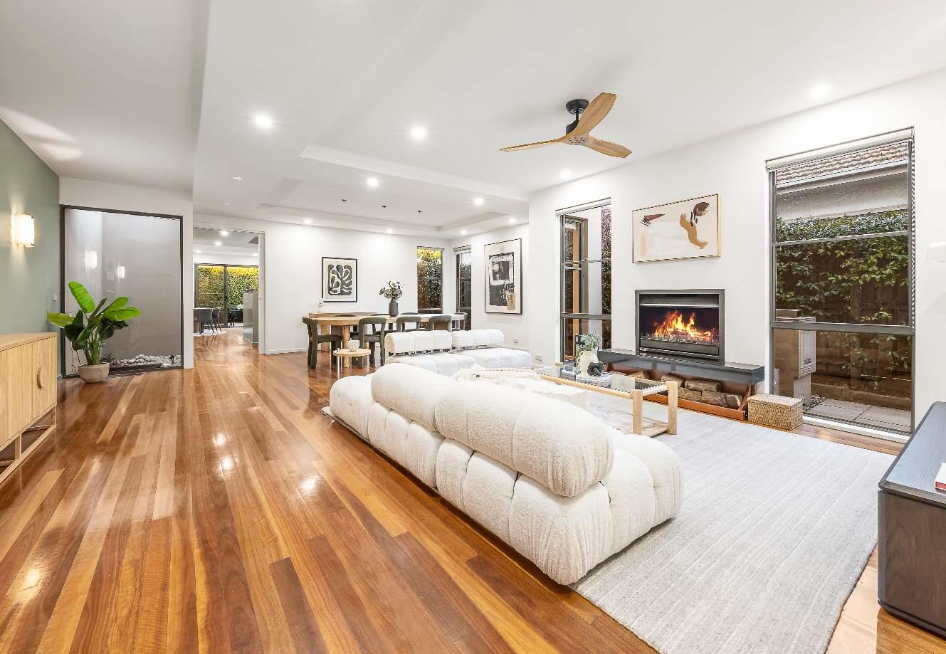 Sophistication, innovation & crisp designer lines are cornerstones of this exquisitely renovated residence providing a stunning contemporary response to today’s lifestyle. A pebbled path leads to the front door with low set windows heralding voluminous open plan living spaces with a serenity all its own. Illuminated living & dining are served by the galley style kitchen with engineered stone benches including a big breakfast bar & a suite of Siemens appliances. Beyond, sliding doors stack neatly into a wall & reveal a north facing garden with a canopy of established trees overhanging a deck & paved area - & as part of the original