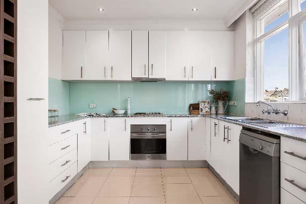 communal gardens. This light filled space is further complimented by a well-appointed kitchen featuring marble benches. Throughout the property the timeless elegance continues through to two sunlit bedrooms, the main with a marble benched ensuite, as well as both bedrooms featuring arched windows, Juliet balconies & built-in robes. Other features include a sparkling central bathroom with marble benches, a bath & shower combo, a powder room with Euro laundry, ducted heating & cooling, secure basement parking for one car, video intercom entry & lift access.