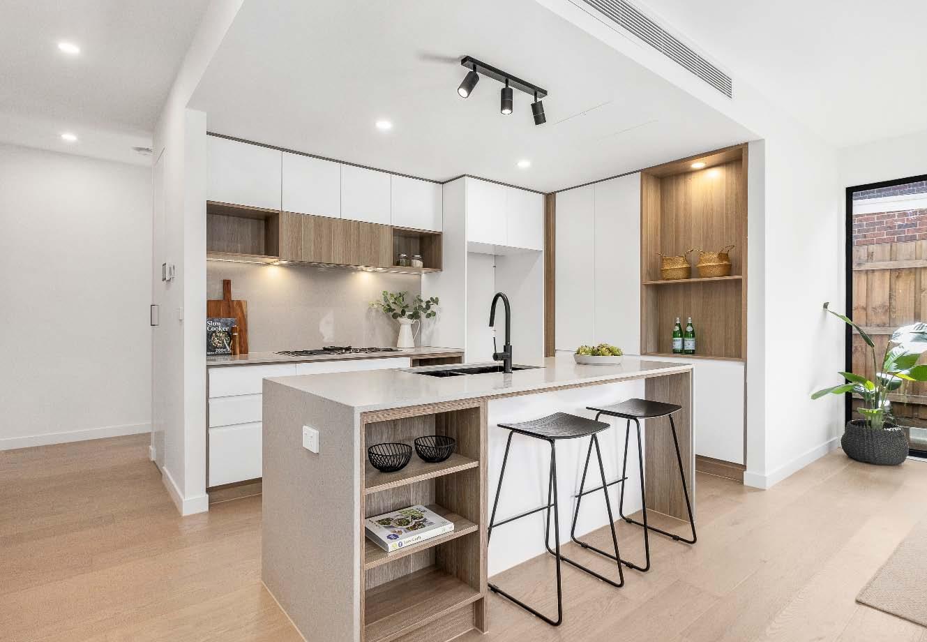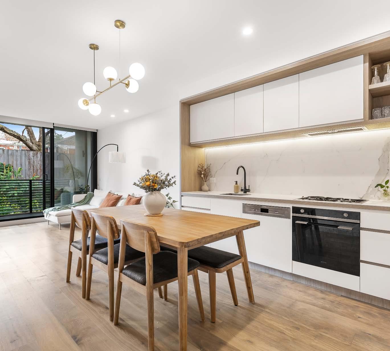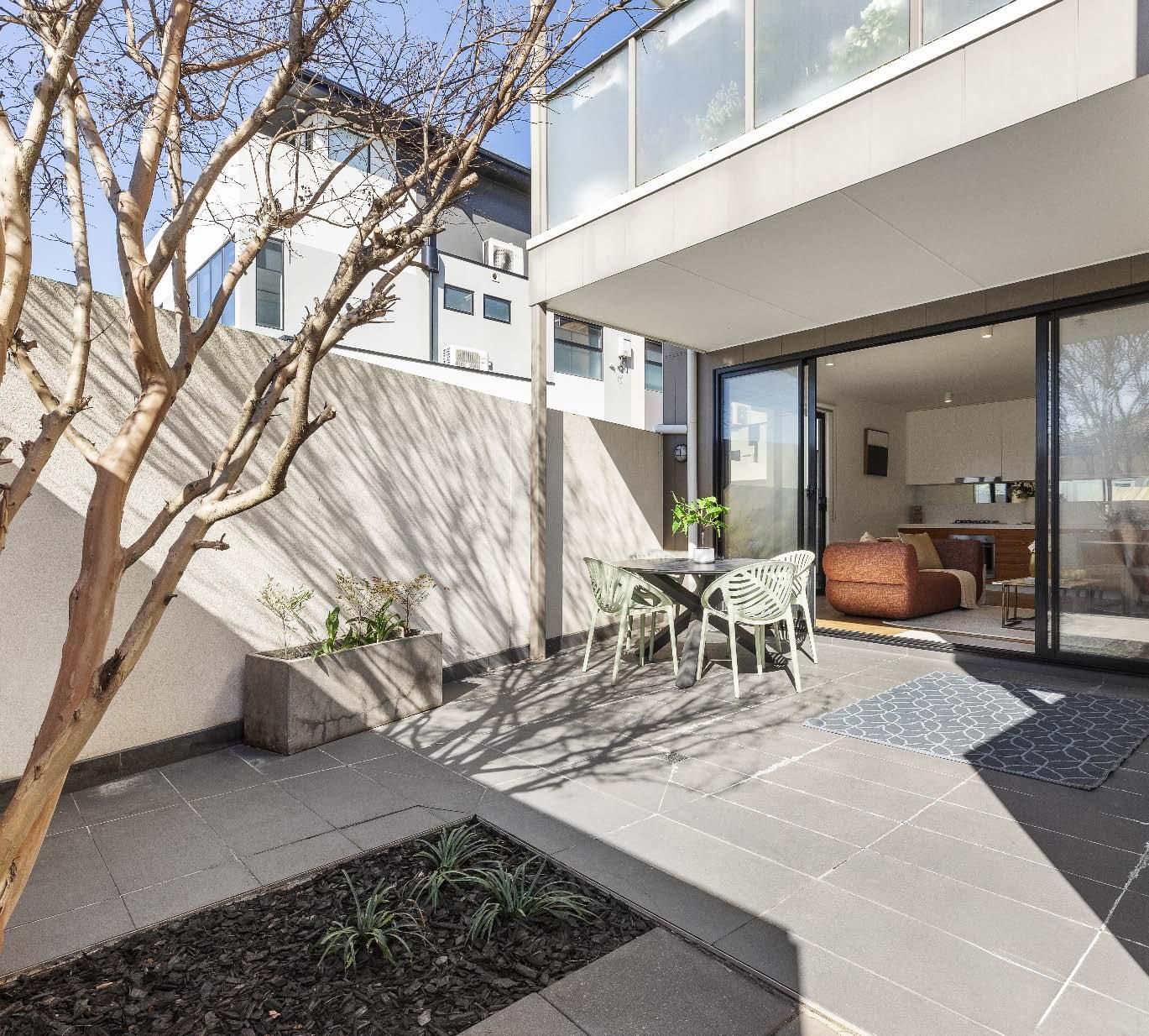 In a stunning brand new architecturally designed block of just four residences, discover an exclusive inner-city sanctuary with refined exterior & modern surroundings. Unique lighting guides you into a home that seamlessly blends cuttingedge style with urban flair. Elegantly presented, the interior boasts soaring ceilings & engineered oak floorboards that frame a spacious open-plan living & dining, complete with built-in joinery & a marble banquette. Conveniently the main bedroom is located on the ground level featuring built-in wardrobes, along with an ensuite & your own private courtyard through sliding doors. The