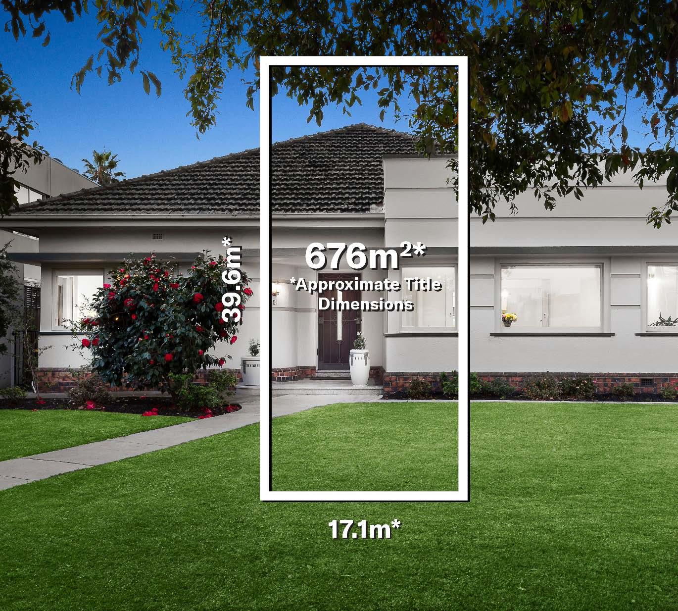 Offered to the market, this impeccably maintained & largely original home presents an exceptional opportunity on a generous 792m2* allotment. With an approved planning permit & scheme for two large five-bedroom townhouses (STCA), the future is full of promise. Bathed in natural light, the traditional floorplan offers warmth & character. A wide entry leads to a spacious formal lounge with high ceilings & ornate cornices, while the vintage kitchen includes ample storage, quality appliances & an adjoining meals area. Three oversized bedrooms, all with built-in robes, are serviced by a retro-style bathroom, separate toilet & full