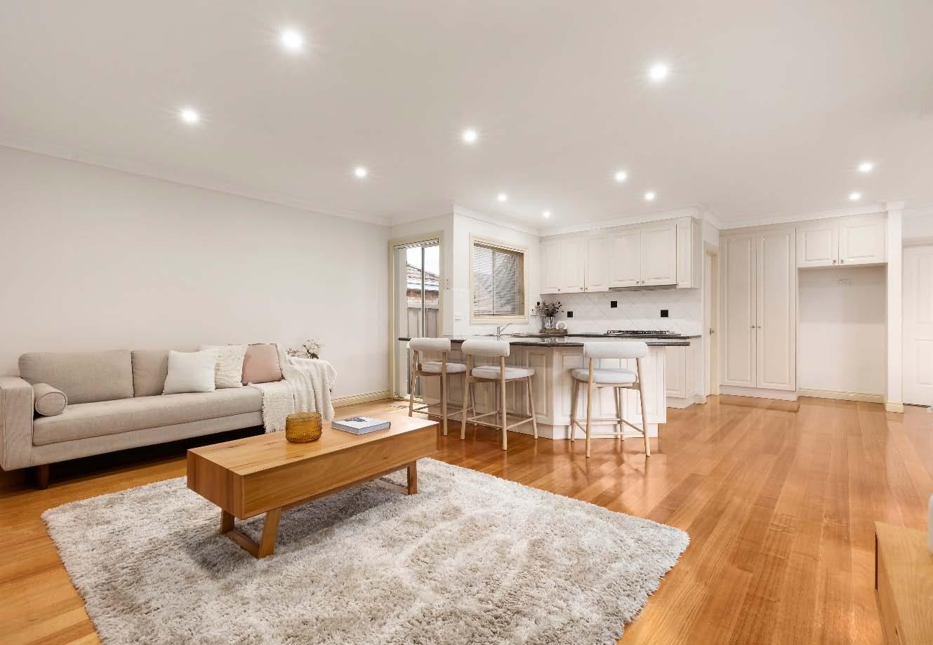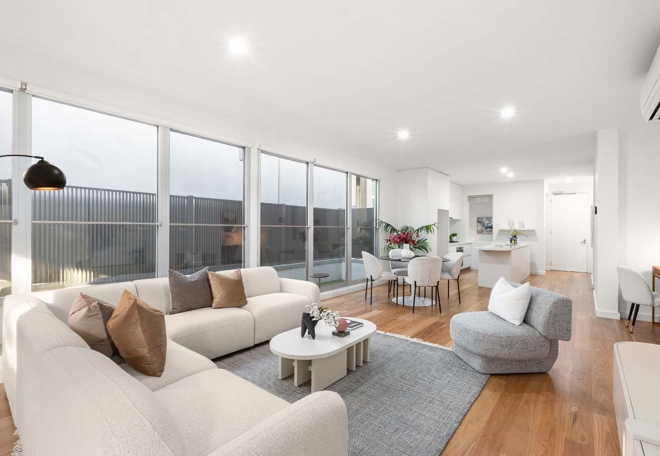 An inviting contemporary appeal & a prime Carnegie location sets the scene for this immaculately maintained street fronted town residence in a tightly held block of just four. Ready for immediate enjoyment with stylish updates & the added advantage of two alfresco spaces to enjoy, this peaceful & private abode offers an enviable low maintenance lifestyle, ideal for young families wanting to enter this keenly sought after family friendly locale. Glistening parquetry flooring greets you on arrival, accesses a naturally light filled living room & leads through to an impressively sized dining with sliding doors