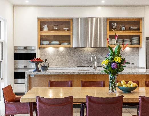 cooktop & dishwasher. The accommodation portion of the home comprises four bedrooms with built-in robes – serviced by a central family bathroom - & a primary suite complete with walk-in robe & ensuite. A central study space, powder room & storage throughout complete the floorplan of the primary building. Across the front alfresco, a separate home office/annex is fitted with a kitchenette, laundry facilities & built-in storage. An automatic garage, single carport, outdoor storage/utilities area, secure double Arma shutters, hydronic heating, ducted aircon & a split system in the living complete the home.