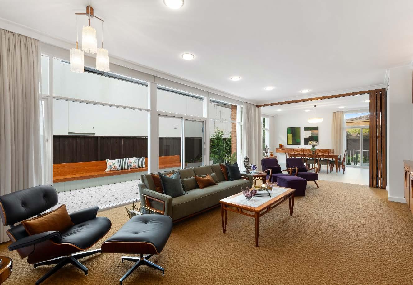 height glass windows & doors, this inviting space is highlighted by a privately enclosed internal atrium & extends further to a north-facing alfresco terrace. A dedicated study with custom joinery, fold-out desk & retro bar adds to the appeal. While a functional kitchen with plenty of storage leads to a separate laundry with access to a rear garden. Away from the living zone, the hallway delivers a main bedroom as well as two additional bedrooms all enhanced by original parquetry floors & bespoke built-in cabinetry. The bedrooms share a central bathroom & separate toilet. Other features include a double carport & ducted heating.