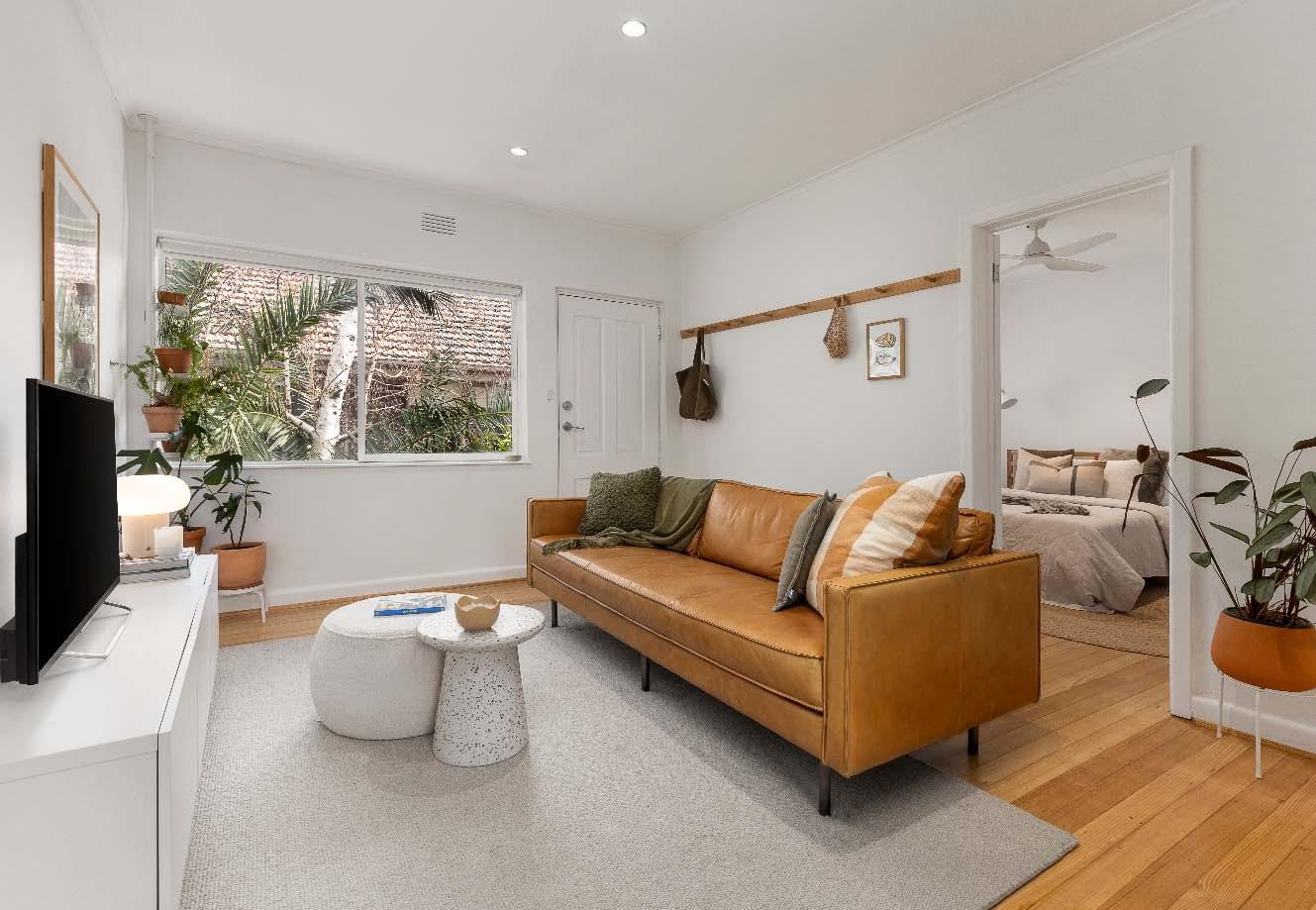 Tucked away at the rear of a well maintained block, this light filled first floor apartment offers a comfortable & convenient entry into one of Melbourne’s most sought after lifestyle locations. Whether you’re a first home buyer or a savvy investor, this neatly presented apartment is the opportunity you’ve been waiting for. Freshly carpeted throughout, a sundrenched northerly oriented living room with large windows & leafy outlooks flows through to a functional kitchen with ample space for casual dining. While a good sized bedroom with built-in robes & a sparkling bathroom with shower over bath, complete the