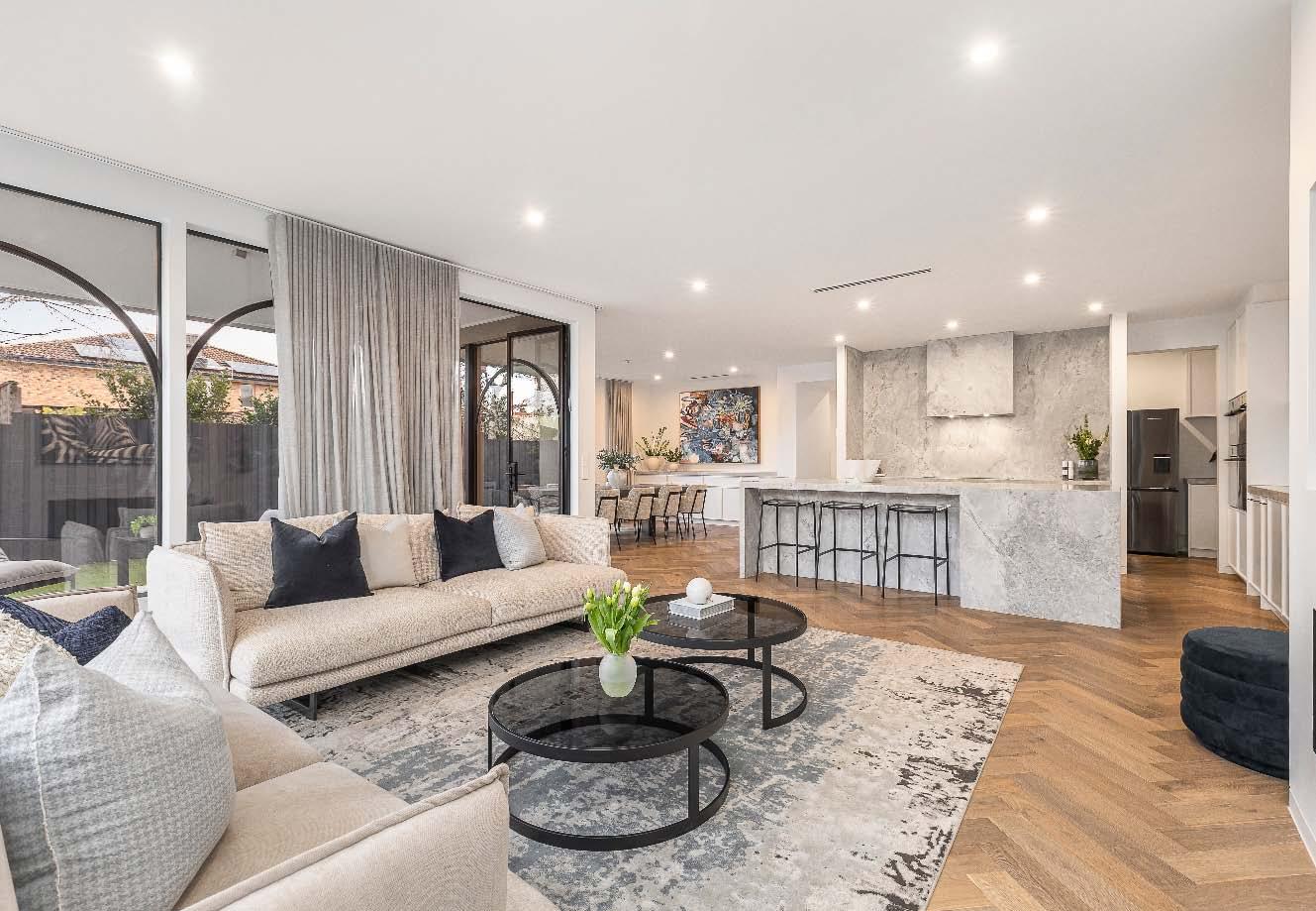 Tucked away in a peaceful cul-de-sac, this bespoke, as new family residence showcases impeccable craftsmanship, luxurious finishes & uncompromised quality. With no detail overlooked, this architecturally striking residence impresses with its concrete-rendered façade & picturesque front garden. Inside, solid oak parquetry flooring flows throughout the downstairs domain. The heart of the home - a wonderfully expansive open plan living & dining zone with a gas fireplace is wrapped in glass windows & doors with striking arched framing & extend out to a vast undercover alfresco area overlooking a solar heated pool &