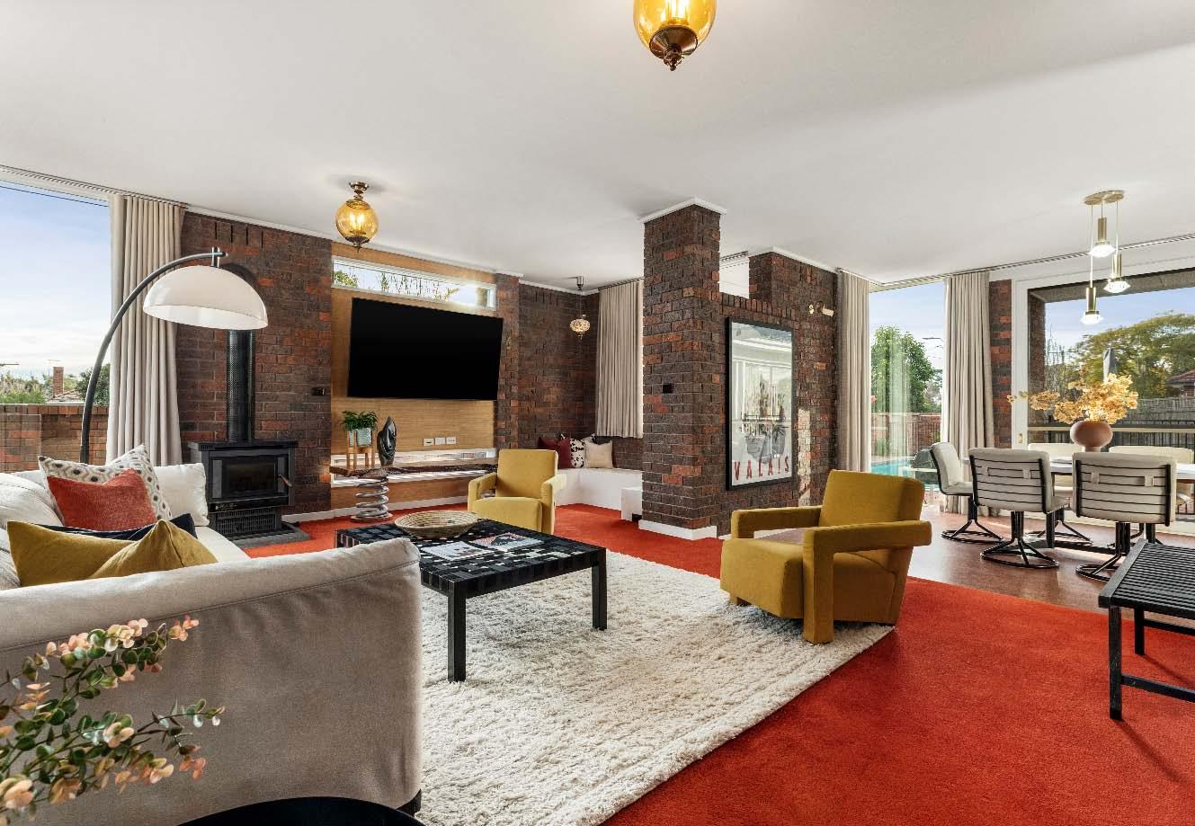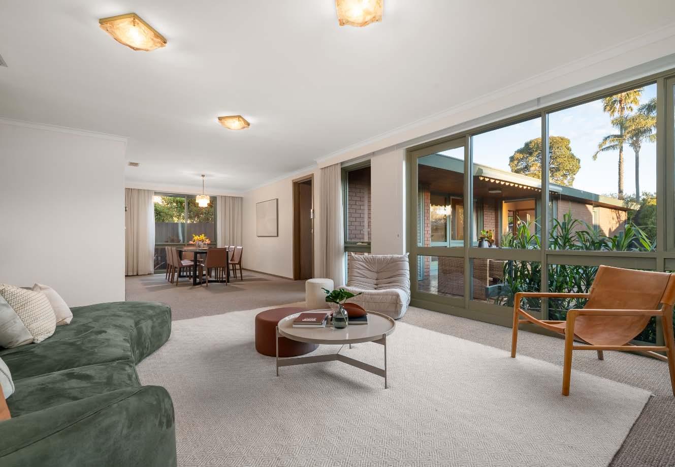 Brimming with mid-century character & enviably positioned in a sought-after Caulfield pocket, this solid brick retro classic presents a rare & versatile opportunity to secure a piece of history. Showcasing generous proportions, superb natural light & bespoke timber cabinetry crafted by renowned 1970s cabinetmaker Jakob Rudowski, the home is immediately comfortable while offering outstanding scope to renovate, reimagine or explore exciting future possibilities (STCA). A large front patio overlooking the front garden welcomes you before stepping inside to a sundrenched living & dining zone. Framed by full-