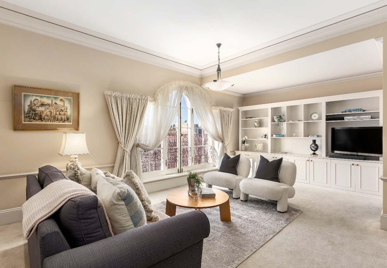 Set within Toorak’s iconic Clairmont building, in one of Melbourne’s most prestigious locations, this well presented third floor residence (with lift) is a rare offering of old-world grandeur & Parisian inspired charm. Graced with generous proportions & and abundant natural light, this timeless sanctuary evokes a sense of European romance from the moment you step inside. An entrance hall with parquetry flooring welcomes you & leads you to an expansive living & adjoining dining zone framed by picturesque full height arched glass windows. A charming Juliet balcony with wroughtiron detail overlooks the meticulously landscaped