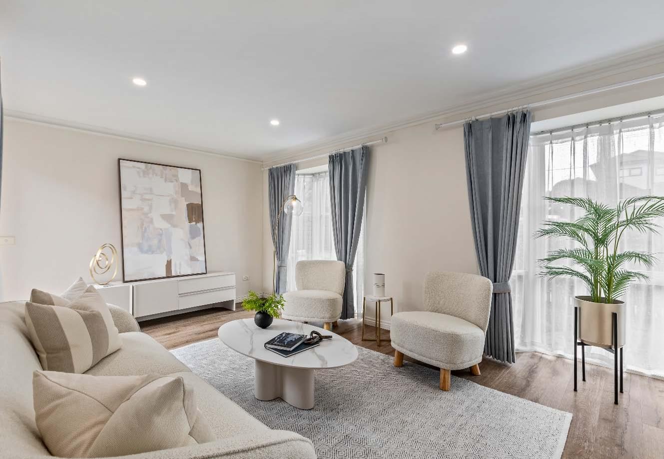 gas fireplace anchors the living area, creating the perfect ambiance for cosy nights or stylish gatherings. Upstairs, accommodation comprises four bedrooms, including a master suite with a walk-in robe & ensuite. A second bathroom serves the additional bedrooms, while a dedicated study nook & ground-floor home office offer flexibility for today’s remote or hybrid working needs. Every detail has been thoughtfully considered—from zoned ducted heating & cooling to engineered timber flooring, high ceilings & built-in storage. A secure double garage, full laundry & sleek finishes further enhance the home’s refined design.