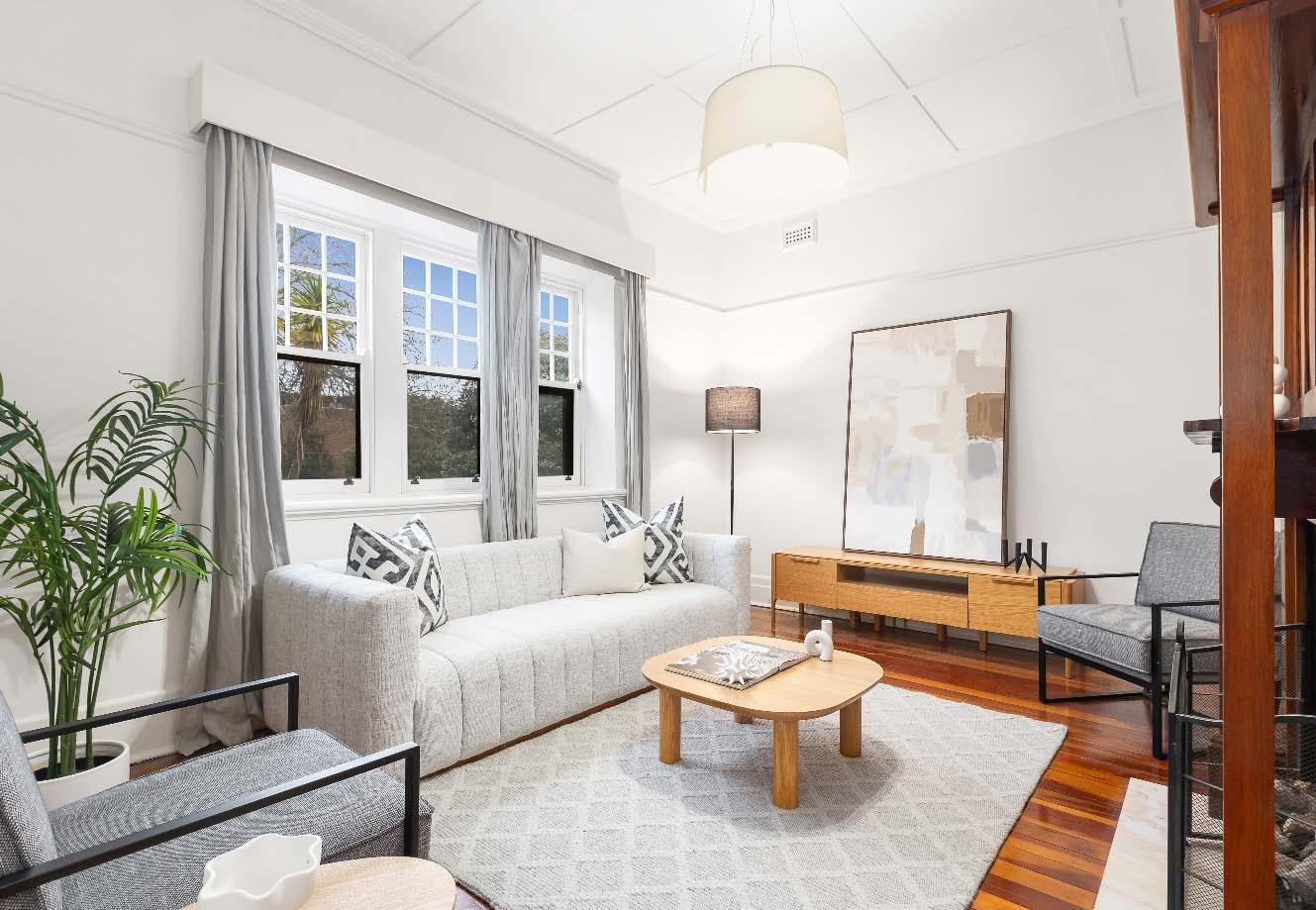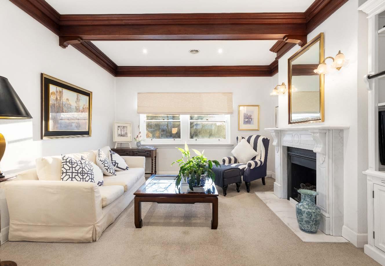 Sophistication & graceful period features form an enchanting combination in this stunning ground floor deco apartment with a private manicured garden. An elegant entrance with built-in cabinetry sets the tone for the characterfilled living within, where warmth, ambience & brilliant natural light reigns. Extensive pale matte floorboards, decorative cornices & crisp white walls are cornerstones of the expansive floorplan, including in the open plan living room enhanced by an open fireplace & chic kitchen with stainless steel appliances. Both spaces open to the glorious north facing wrap around gardens featuring mod