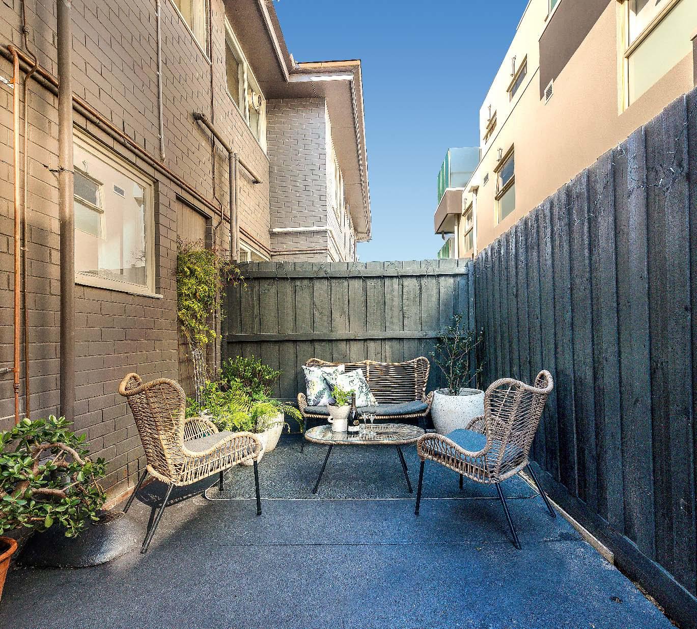 storage whilst the bathroom is fully tiled with laundry space. Step out onto the huge courtyard through the double bedroom with built-in robes & be secured by high fences. A fantastic first home or investment in a small, boutique block with secure access, car park at the rear surrounded by Melbourne’s best lifestyle precinct.