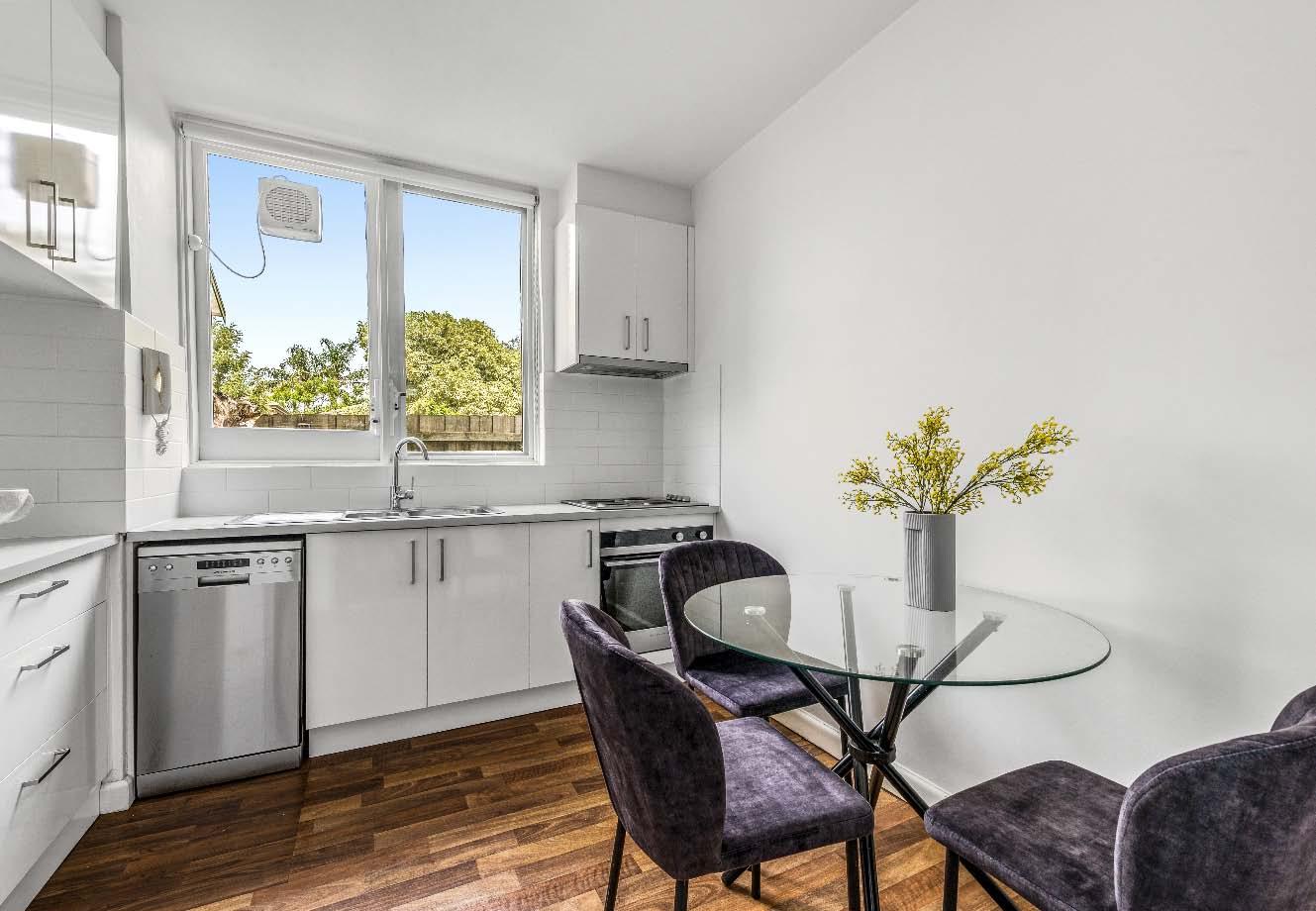 Perfectly positioned & rich in lifestyle appeal, this secure, light-filled ground floor apartment delivers effortless living in one of the area’s most desirable pockets. Peacefully set in a quiet, treelined street within a boutique block of just six, it offers the best of both worlds — moments from the vibrant energy of St Kilda East, yet wonderfully tucked away. Enjoying a prized northerly aspect, the spacious, sun-drenched living room captures beautiful natural light throughout the day. The updated kitchen is well appointed with quality stainless steel appliances (including dishwasher) & a dedicated meals area. Two generous double