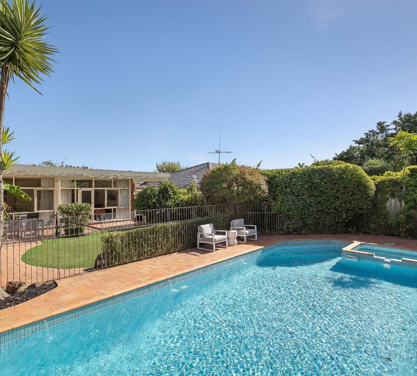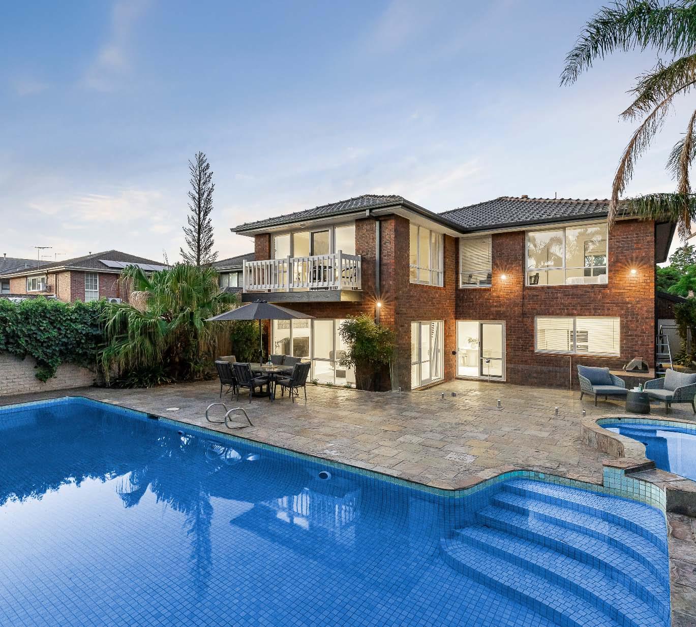 fitted study nook. Bi-fold doors extend outdoors to a wraparound deck, pool & spa, built-in BBQ area & garden sanctuary. Adding to the appeal is a gourmet stone kitchen & butler’s pantry with quality appliances. The accommodation continues upstairs to a versatile loft style landing retreat & fifth/optional main bedroom with ensuite - the ideal parents’ sanctuary, guest accommodation or teenage haven. Other attributes include a circular driveway behind auto front gates with off street parking, hydronic heating, split system heating/ cooling, laundry & powder room. *Approximate Title Dimensions.
