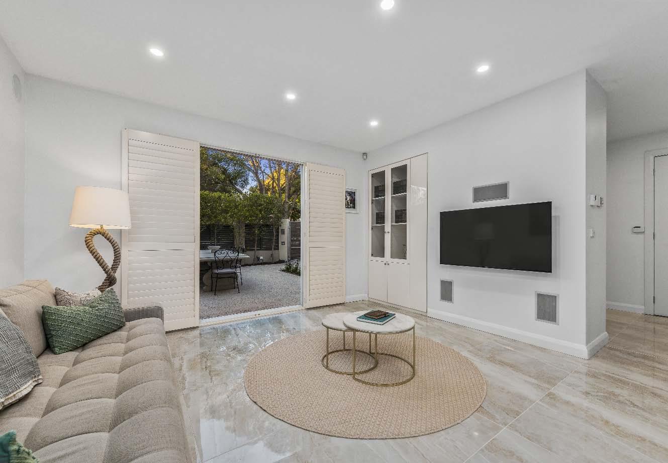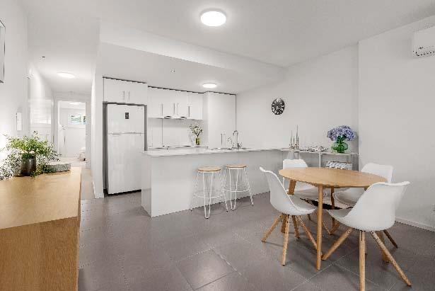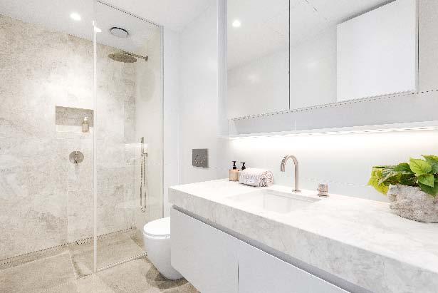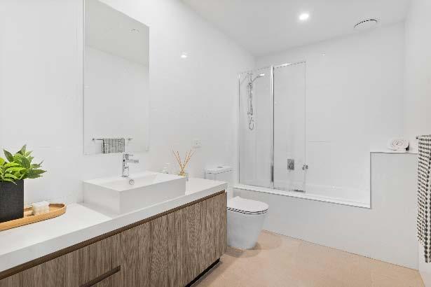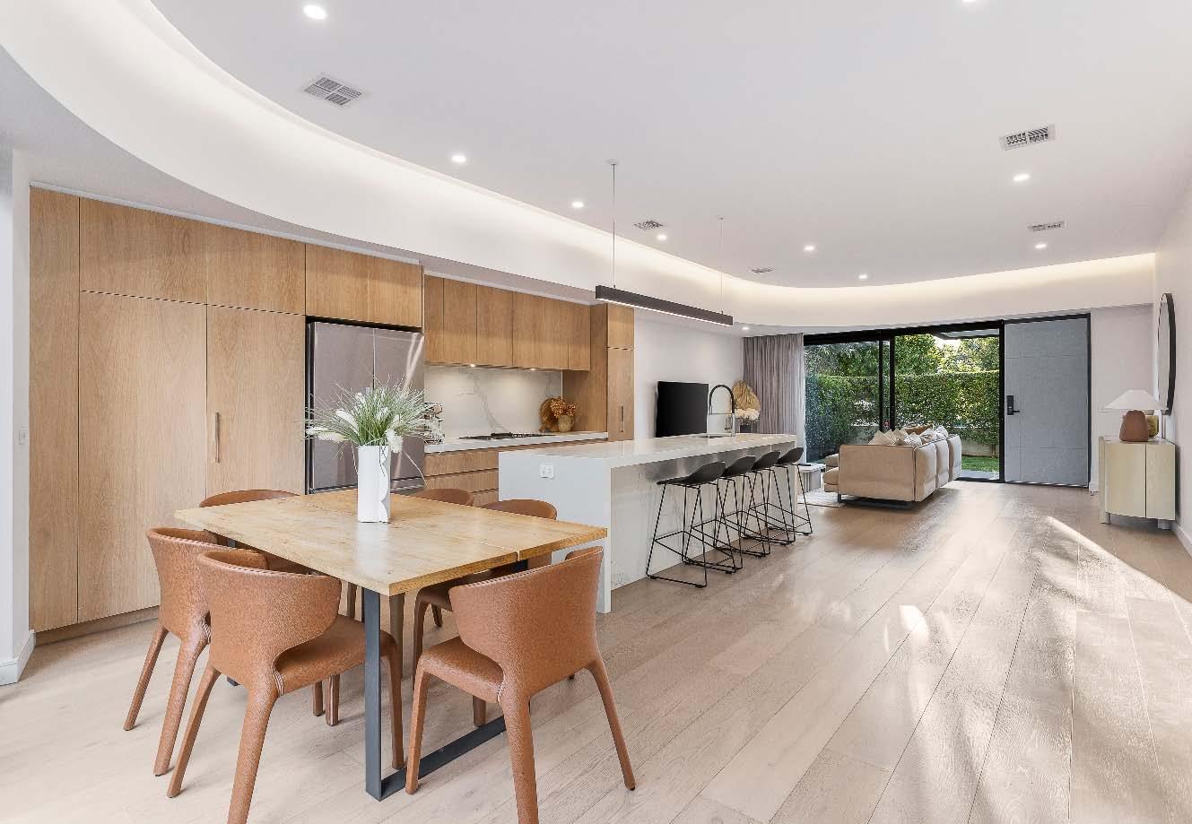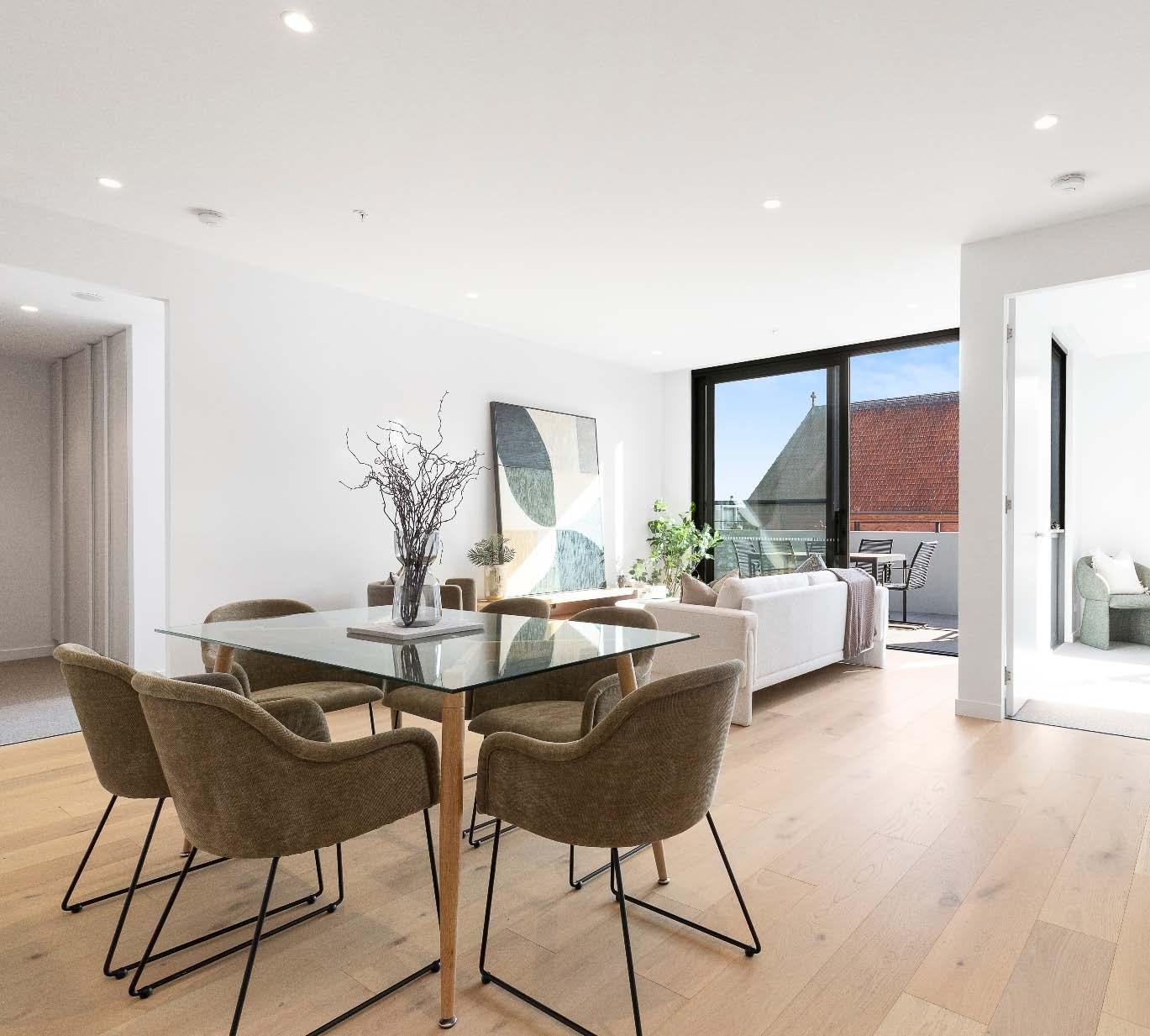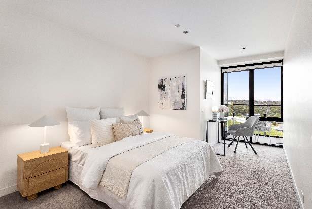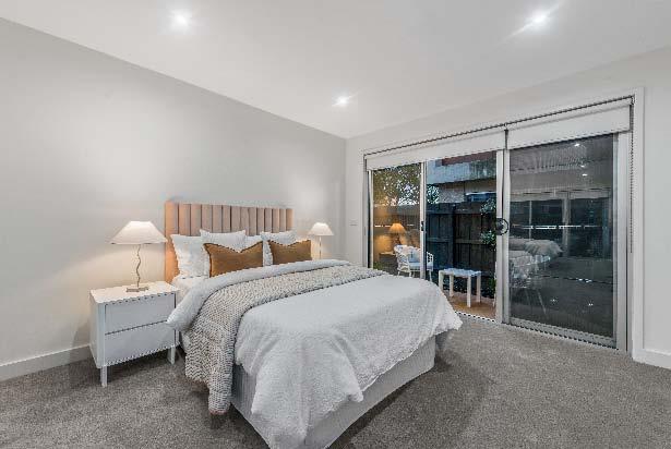 stone benchtops, an island bench & stainlesssteel appliances. Accommodation includes three bedrooms, two with built-in robes, the main enjoying an ensuite, while a beautifully finished central bathroom offers a rainfall shower & mirrored cabinetry. Additional highlights include a laundry with storage, a dedicated top-floor study, roller blinds & split-system heating/cooling throughout. A private terrace delivers the perfect setting for entertaining or unwinding, while secure undercover parking with remote access & internal entry completes this boutique offering within a tightly held complex of just six town residences.