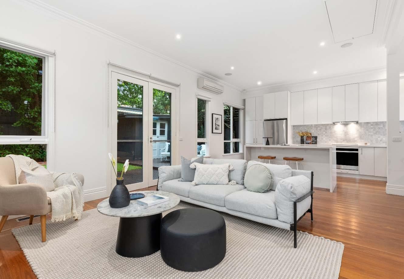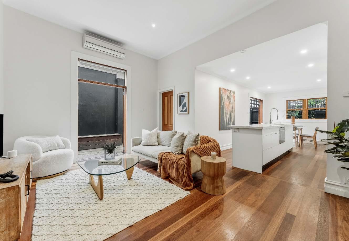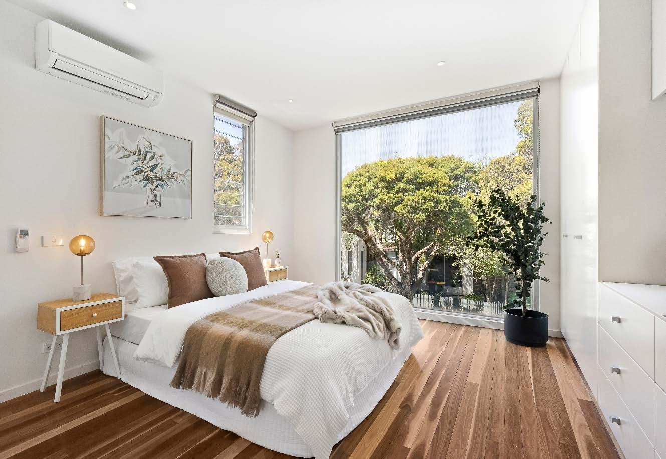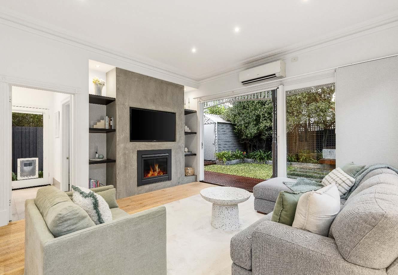 The contemporary island kitchen is equipped with stone benchtops & stainless-steel appliances of a wall oven, gas cooktop & drawer dishwasher. A sympathetically updated bathroom with showerover-bath, split systems in every room & built-in laundry facilities complete this transformed period residence. Perfectly positioned just a stone’s throw from bustling Carlisle Street, across the road from St Kilda Library, walking distance to St Kilda Primary & St Kilda/Balaclava Kinder, plus city-bound trains & trams, nearby reserves & the Elwood foreshore, this lifestyle is one of exceptional convenience & vibrancy.