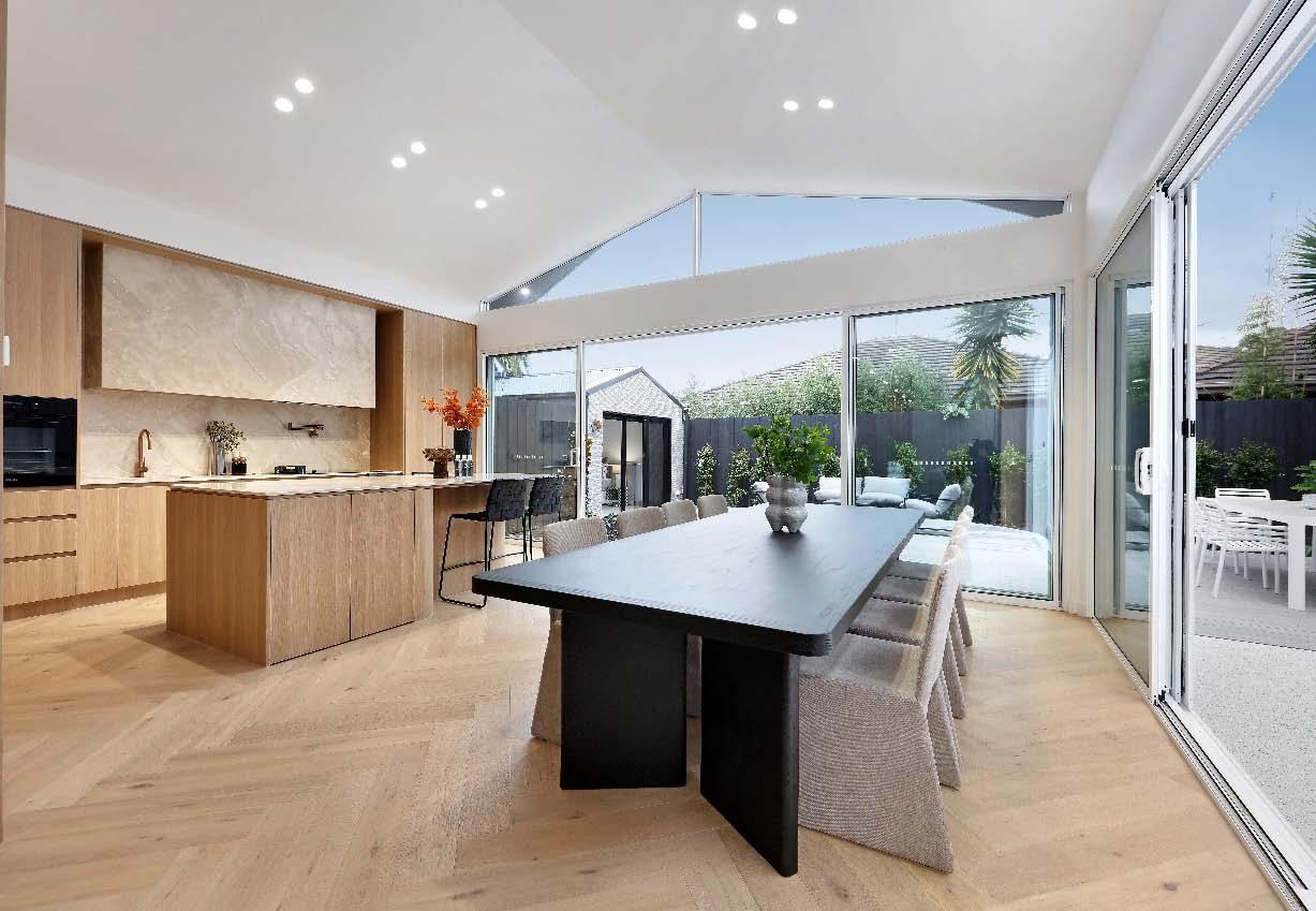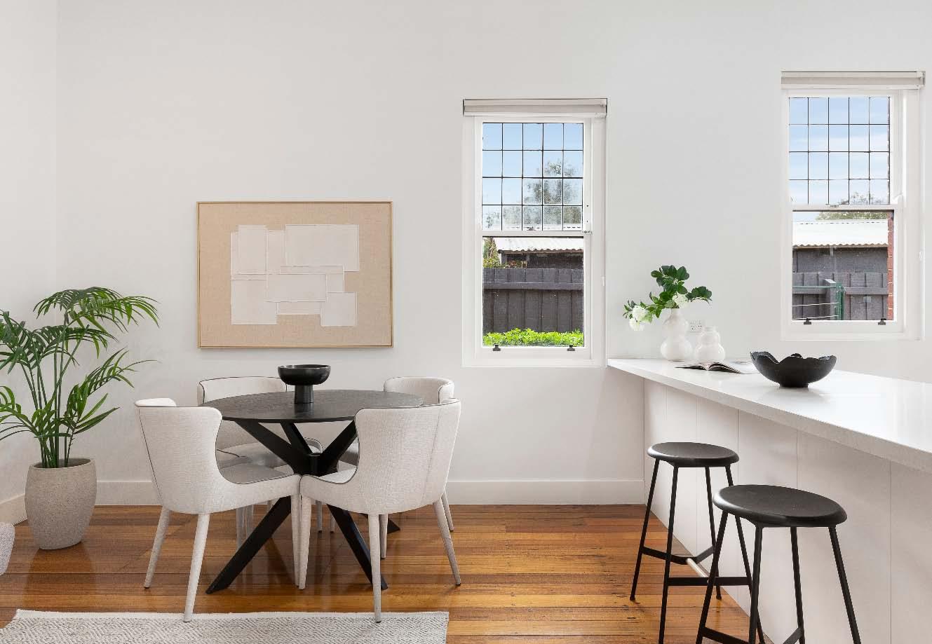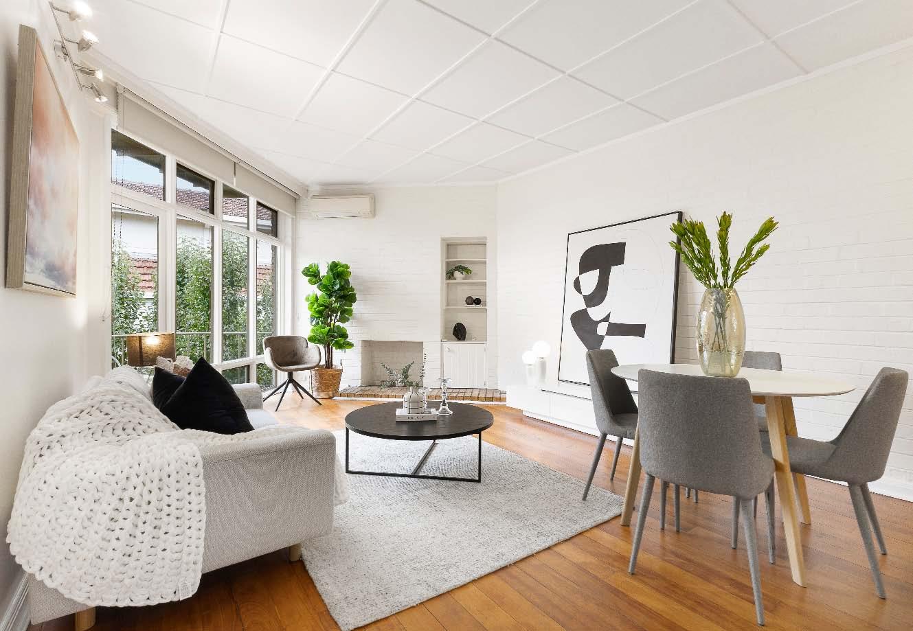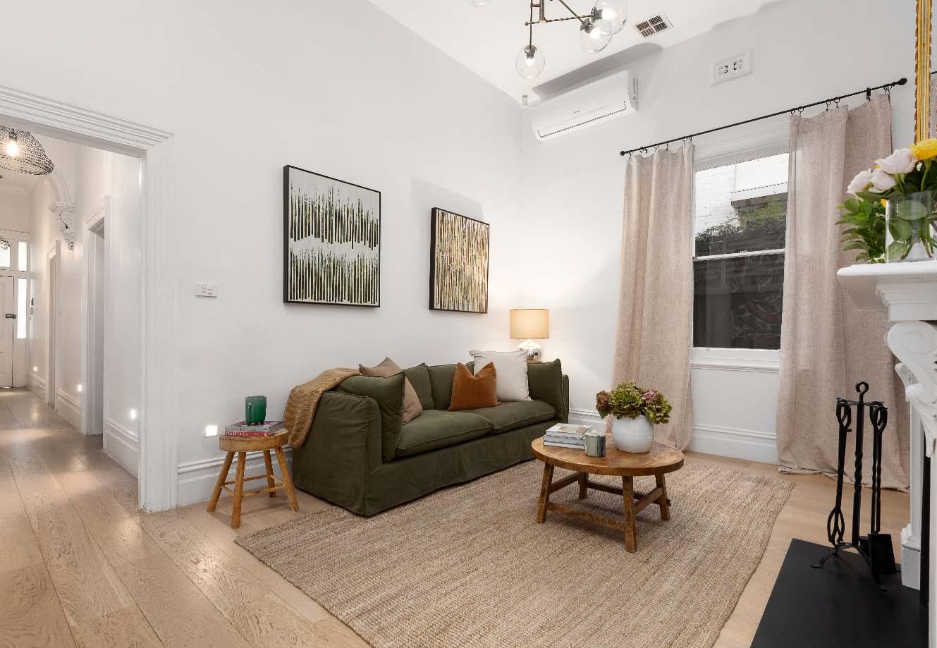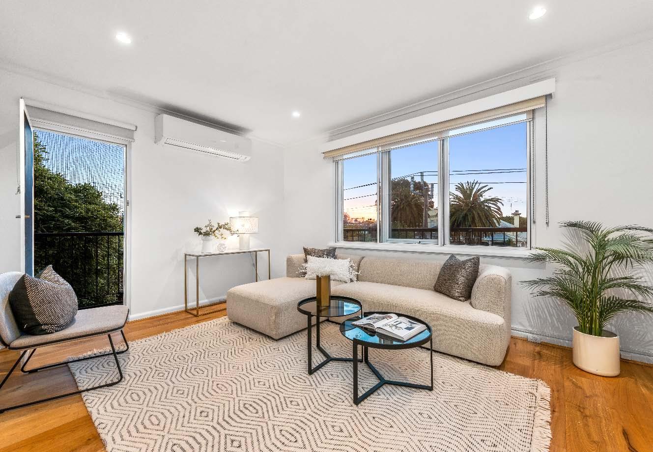 The contemporary island kitchen is equipped with stone benchtops & stainless-steel appliances of a wall oven, gas cooktop & drawer dishwasher. A sympathetically updated bathroom with showerover-bath, split systems in every room & built-in laundry facilities complete this transformed period residence. Perfectly positioned just a stone’s throw from bustling Carlisle Street, across the road from St Kilda Library, walking distance to St Kilda Primary & St Kilda/Balaclava Kinder, plus city-bound trains & trams, nearby reserves & the Elwood foreshore, this lifestyle is one of exceptional convenience & vibrancy.