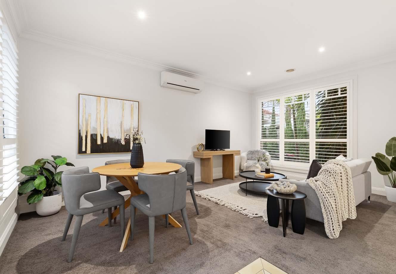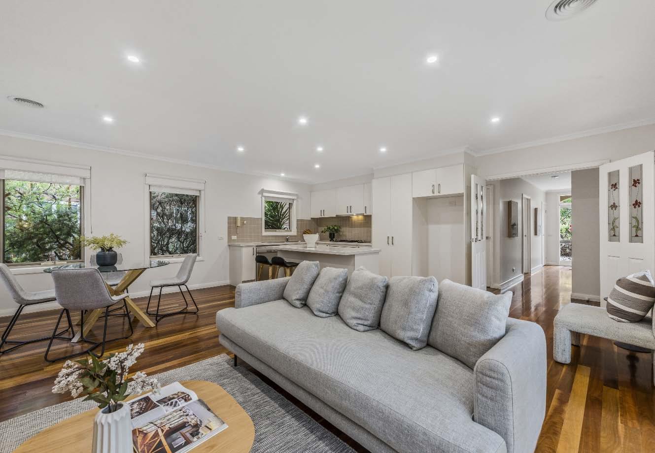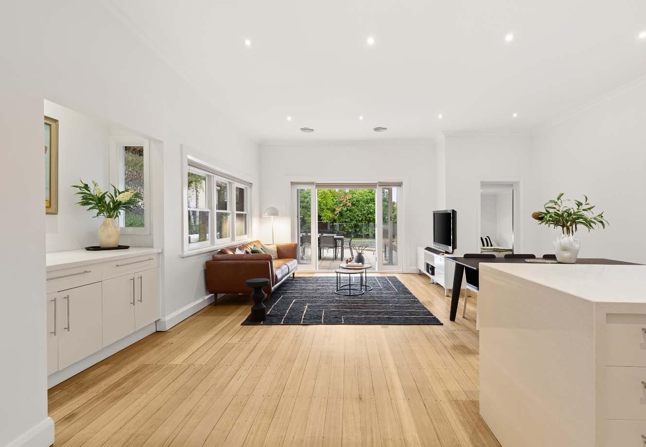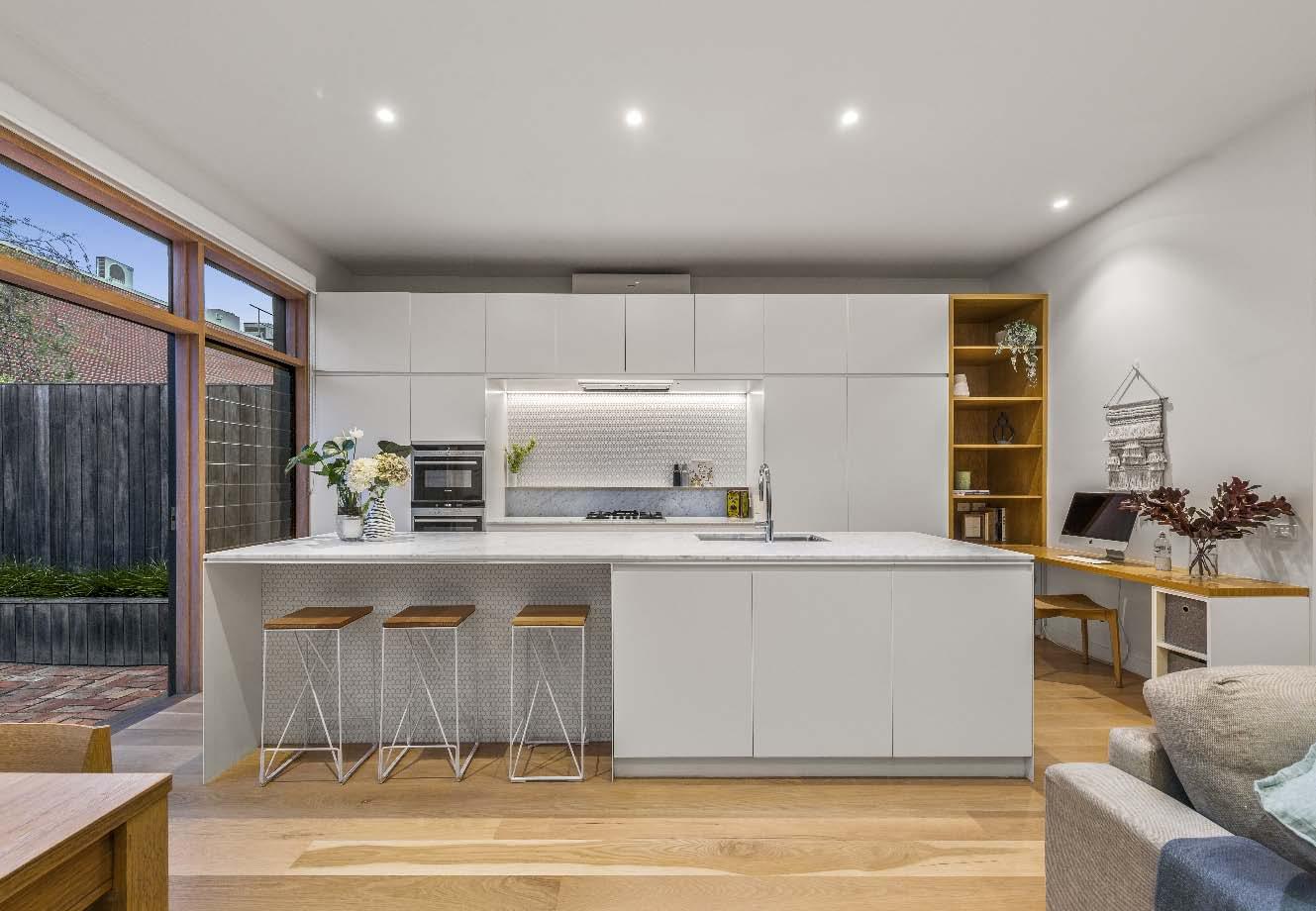 The contemporary island kitchen is equipped with stone benchtops & stainless-steel appliances of a wall oven, gas cooktop & drawer dishwasher. A sympathetically updated bathroom with showerover-bath, split systems in every room & built-in laundry facilities complete this transformed period residence. Perfectly positioned just a stone’s throw from bustling Carlisle Street, across the road from St Kilda Library, walking distance to St Kilda Primary & St Kilda/Balaclava Kinder, plus city-bound trains & trams, nearby reserves & the Elwood foreshore, this lifestyle is one of exceptional convenience & vibrancy.