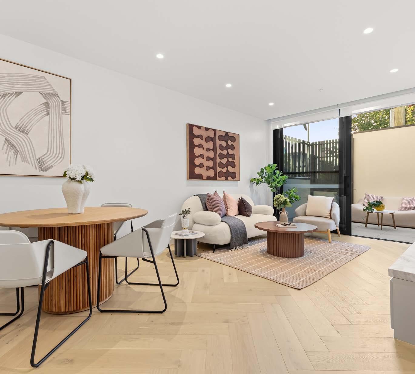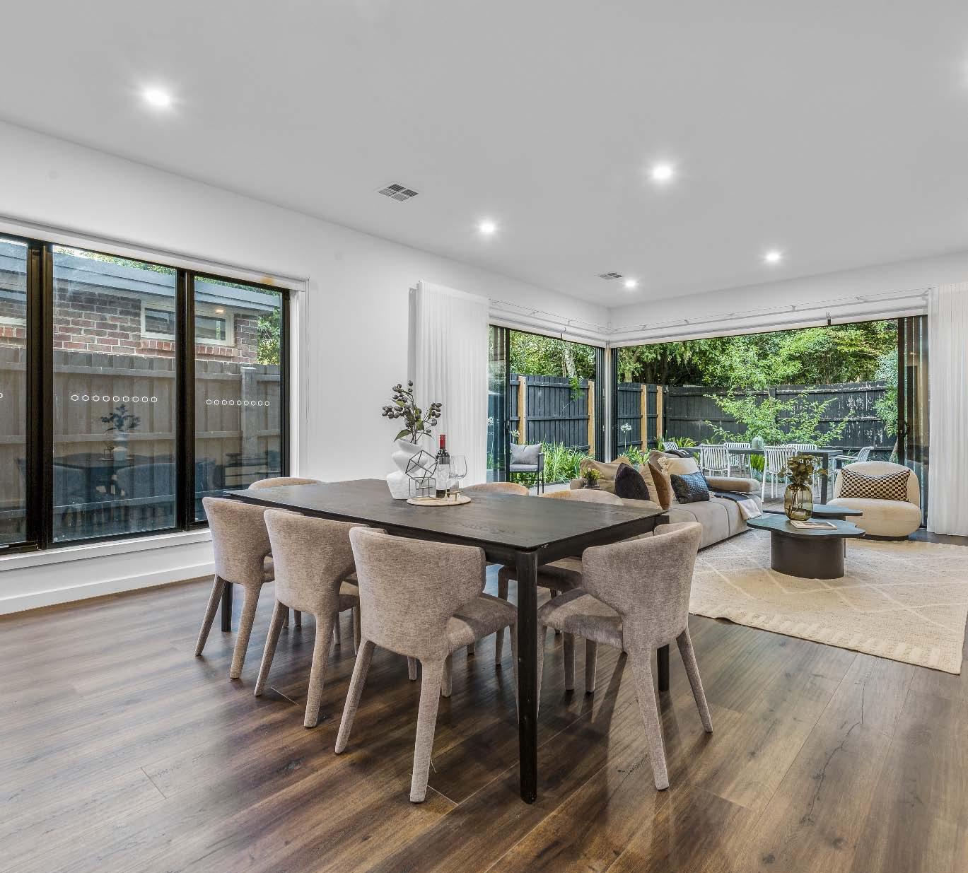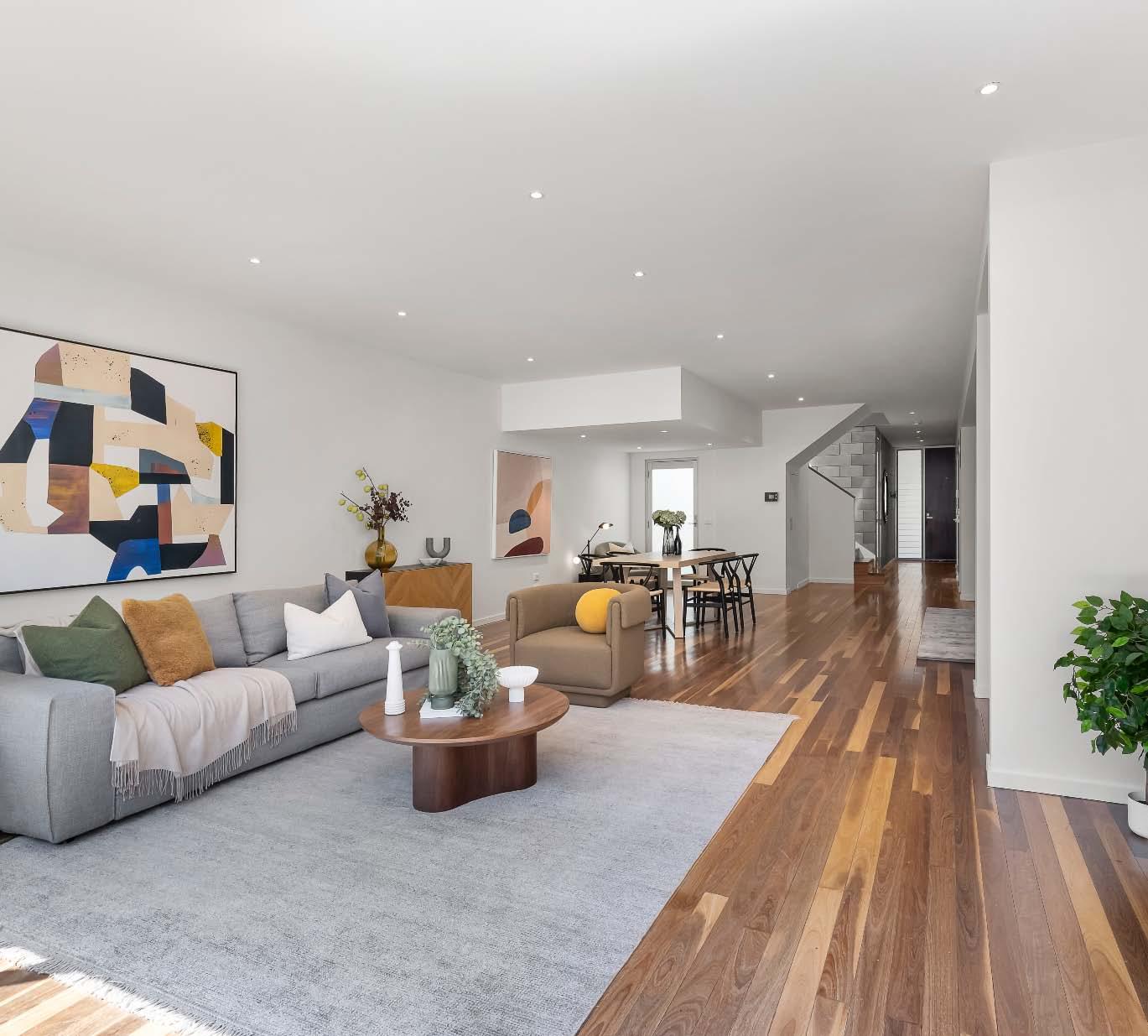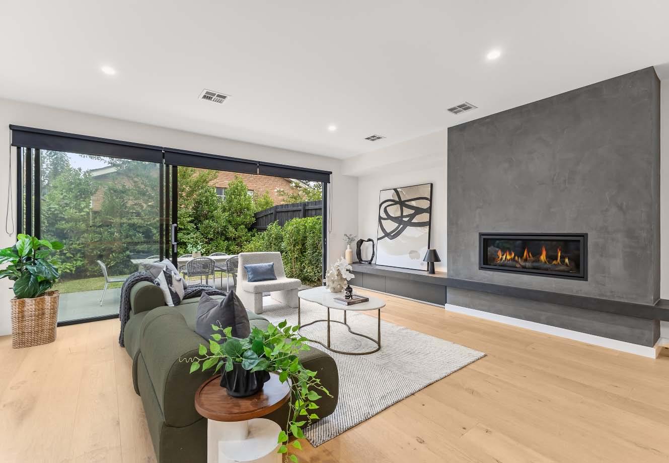 Near-new & architecturally designed, this exceptional townhouse redefines modern living with a rare sense of space, privacy & individuality. Cleverly conceived with an edge-to-edge design & no outlooks into boundary fencing, it delivers the look & feel of a standalone home — a standout in its class. High specifications are evident throughout, with natural stone finishes, recycled brick features, solid surface basins & bathware & timber flooring flowing seamlessly across both ground & first levels. The thoughtfully designed floorplan includes a purpose-built study & a striking sunken lounge — an inspired architectural