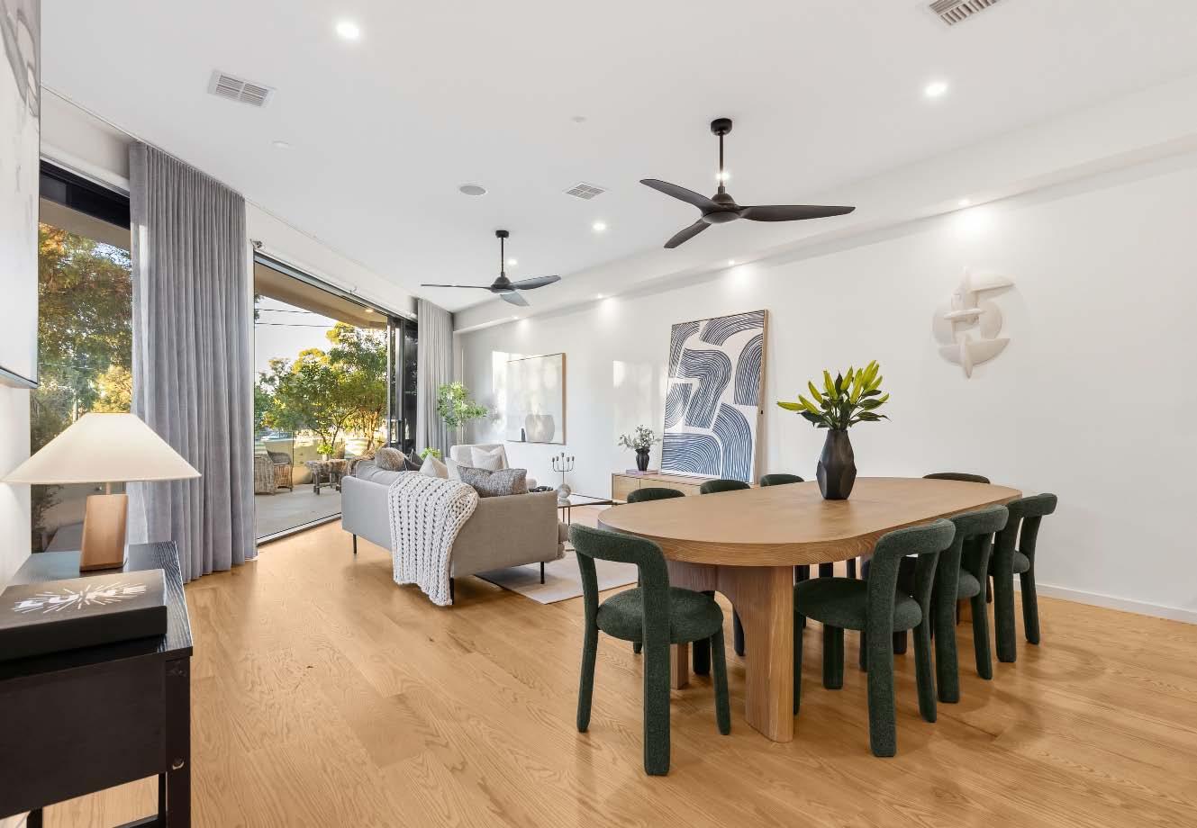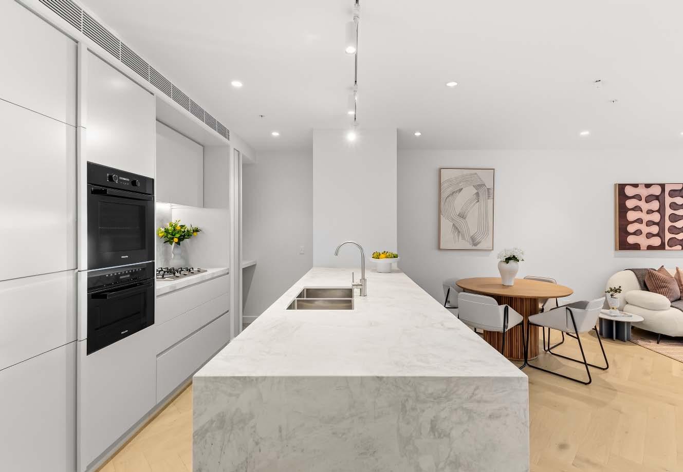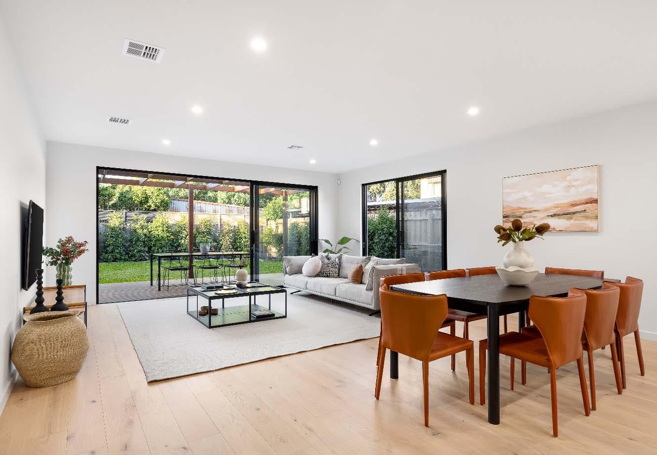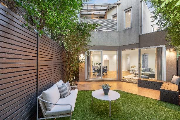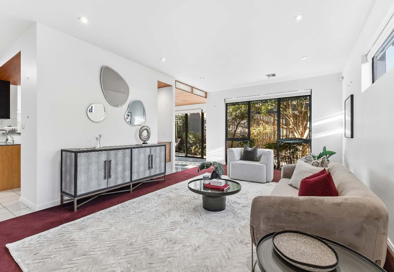 Near-new & architecturally designed, this exceptional townhouse redefines modern living with a rare sense of space, privacy & individuality. Cleverly conceived with an edge-to-edge design & no outlooks into boundary fencing, it delivers the look & feel of a standalone home — a standout in its class. High specifications are evident throughout, with natural stone finishes, recycled brick features, solid surface basins & bathware & timber flooring flowing seamlessly across both ground & first levels. The thoughtfully designed floorplan includes a purpose-built study & a striking sunken lounge — an inspired architectural