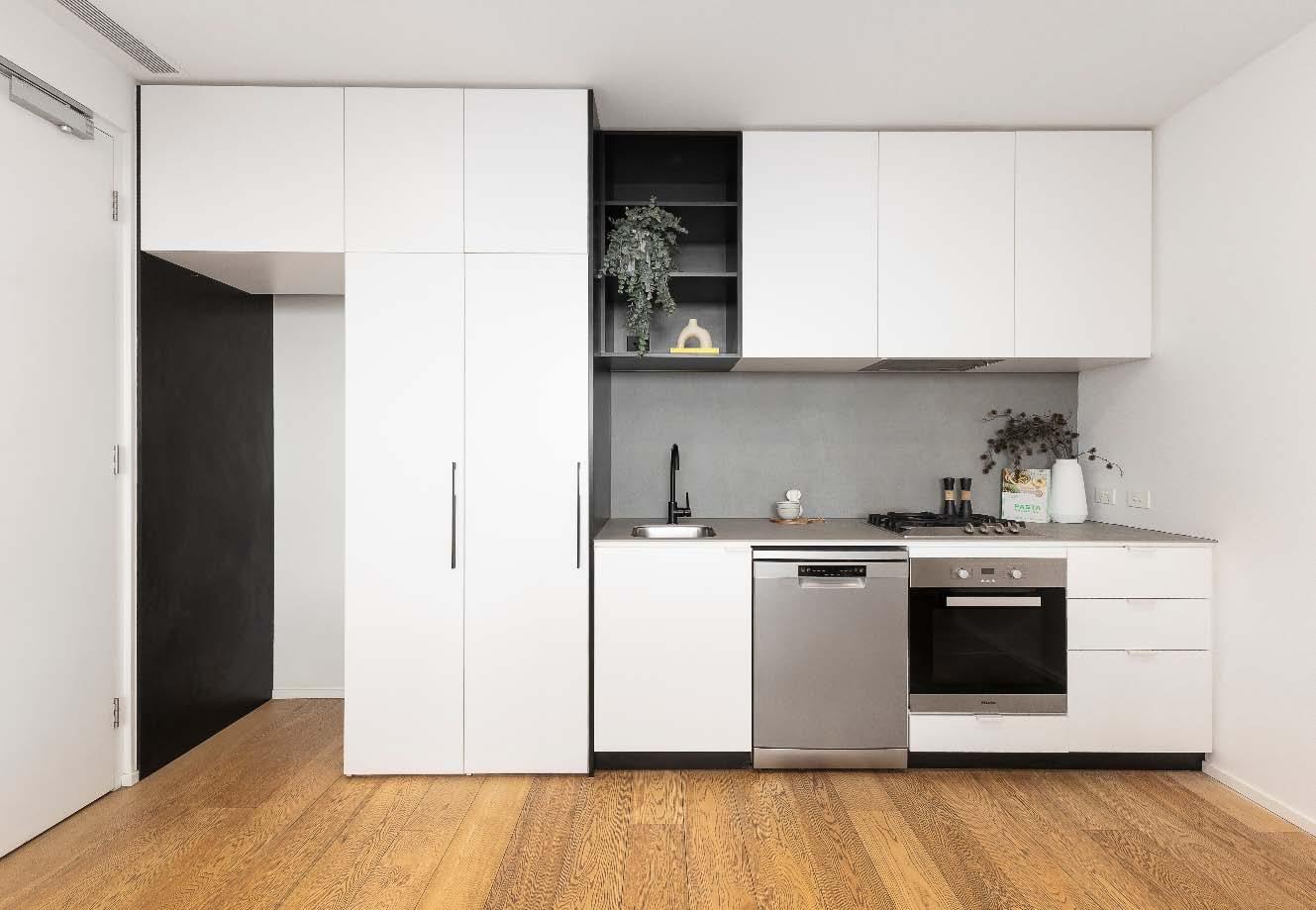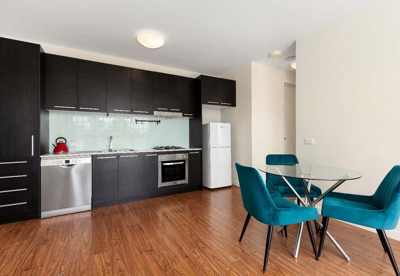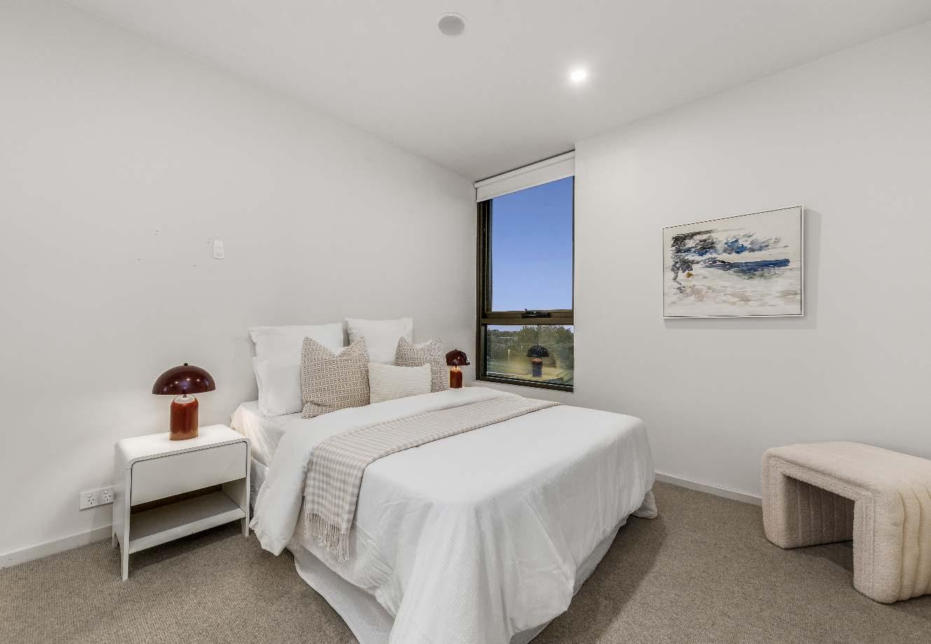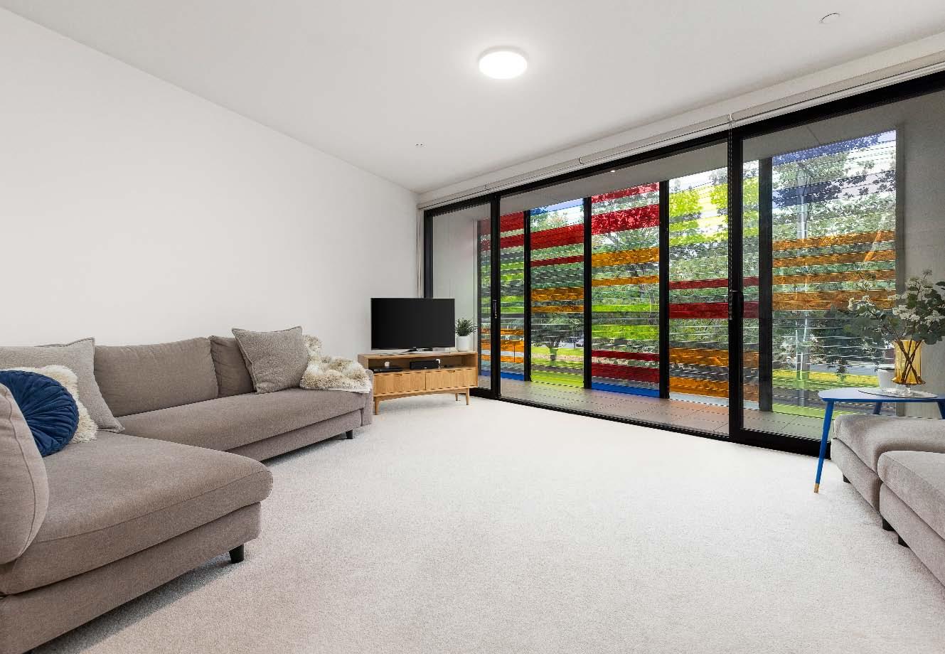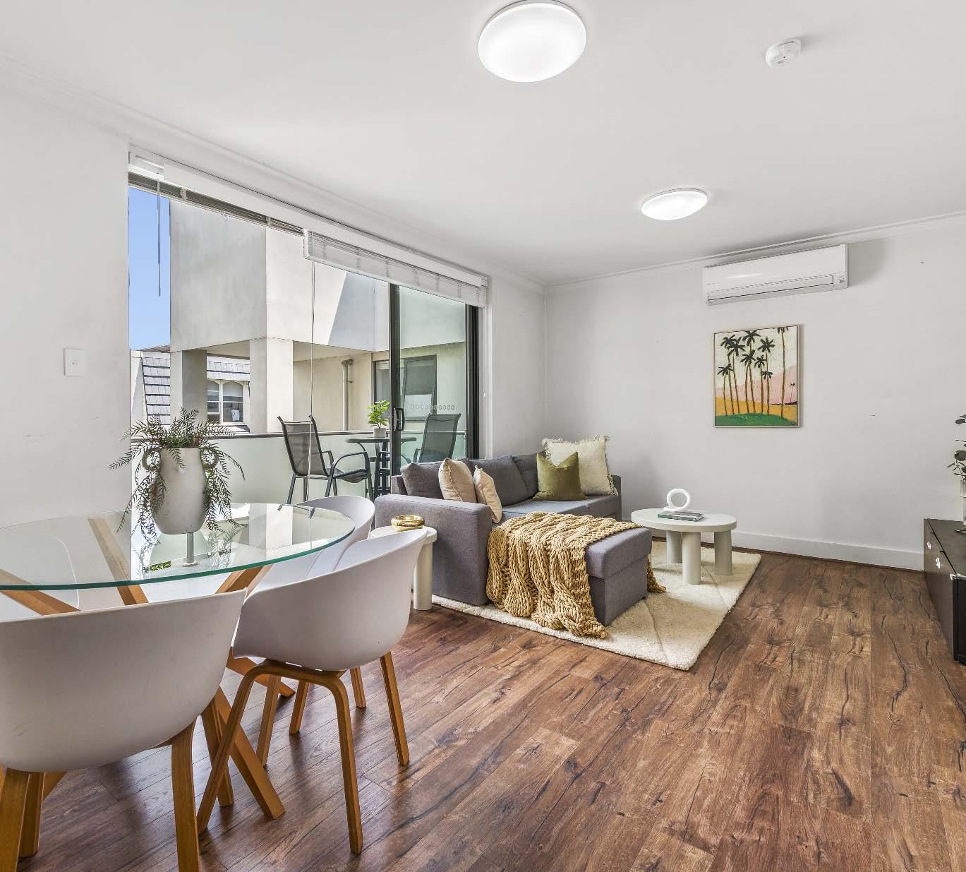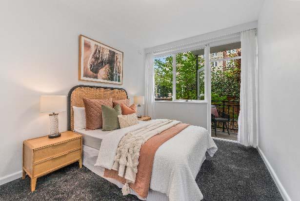 four burner gas cooking, a dishwasher & ample storage space. Both bedrooms are carpeted & feature built-in mirrored robes, while the central bathroom offers a separate shower & toilet. Additional practical features include internal euro laundry & a split system heating & cooling. Secure intercom entry & a double car space complete the offerings in this low-maintenance apartment that combines comfort, convenience & style in one of Melbourne’s most sought-after urban neighbourhoods.