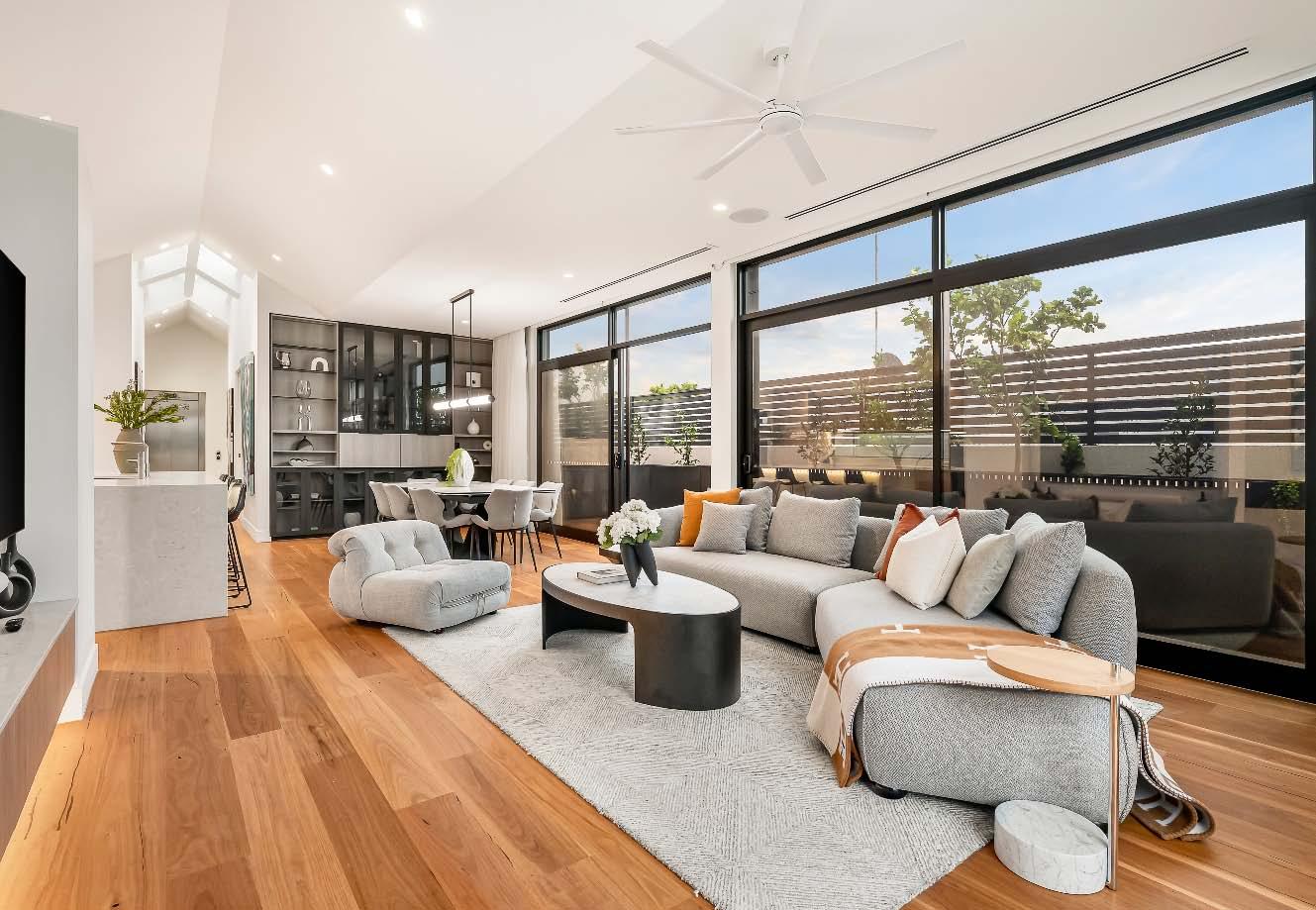 element rarely seen & unlike anything else on the market — creating a dynamic indoor-outdoor connection ideal for both everyday living & entertaining. A generous, central private courtyard enhances the sense of openness, while all bedrooms are beautifully appointed with their own ensuites, delivering comfort & privacy for families, guests or professionals alike. The master suite is a true retreat, featuring vaulted ceilings, a private north facing balcony & a luxurious ensuite, completing a space that feels both indulgent & serene.