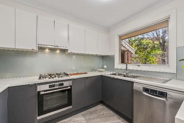 modern well-appointed stone kitchen with quality appliances (including integrated dishwasher) & plenty of storage. Upstairs the accommodation includes a generous main bedroom with enclosed balcony, built-in robes & ensuite, a spacious second bedroom with built-in robes & a modern central bathroom with shower over bath. Additional features include split system heating/ cooling, a Euro laundry, powder room, alarm & offstreet parking in the driveway for two cars.